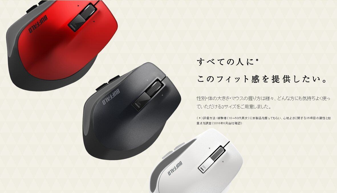 バッファロー BUFFALO USBレシーバー 無線(2.4GHz) BlueLED プレミアムフィットマウス 静音 5ボタン Mサイズ ブラック BSMBW505MBK