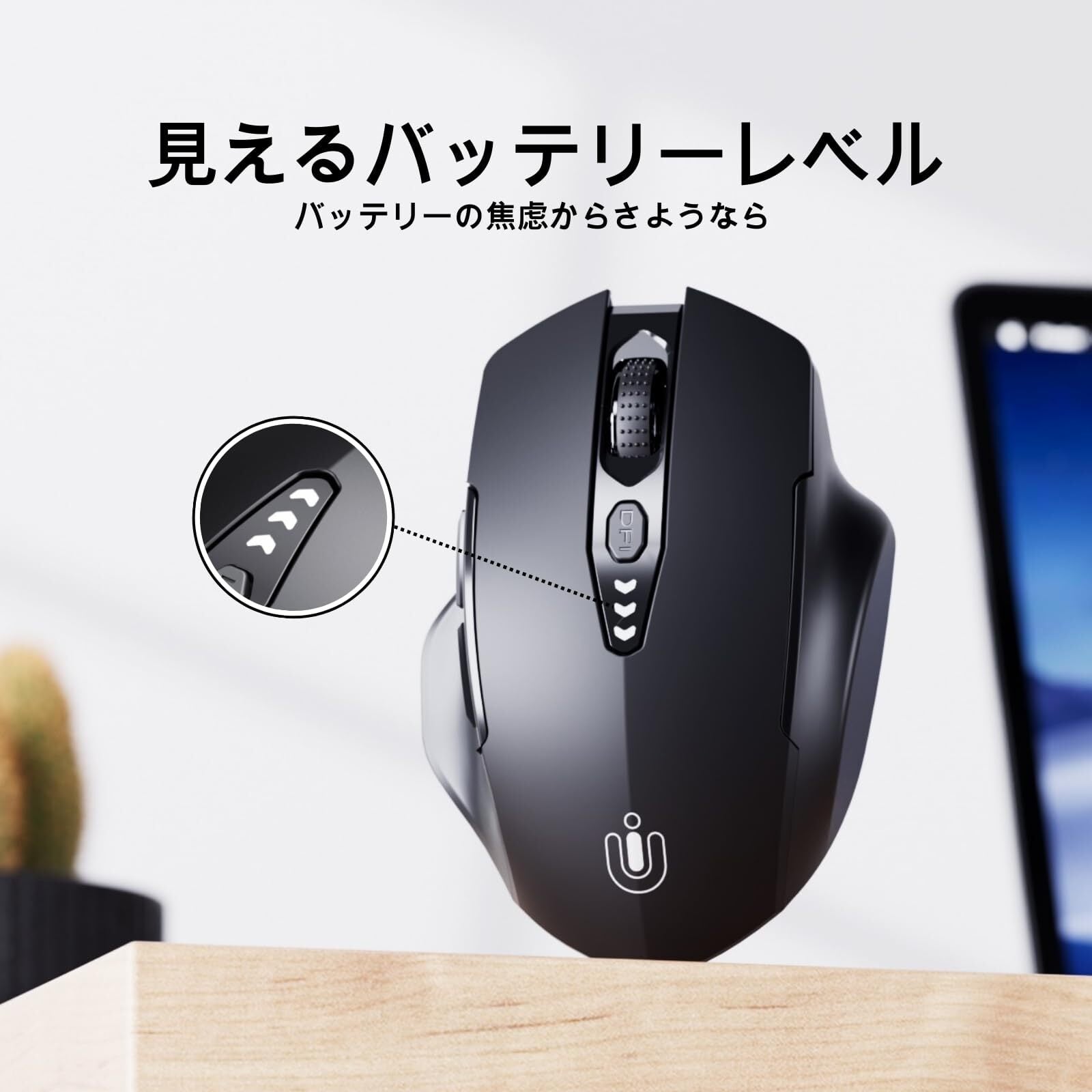 Bluetoothマウス、マルチデバイスワイヤレスマウス、ビジュアル電池寿命、トライモード(BT 5.0/4.0+2.4G Hz)充電式エルゴノミクスマウス、4レベルDPI調整、ラップトップ/PC用、ブラック (黒い) | 毎日発送✿はなまる
