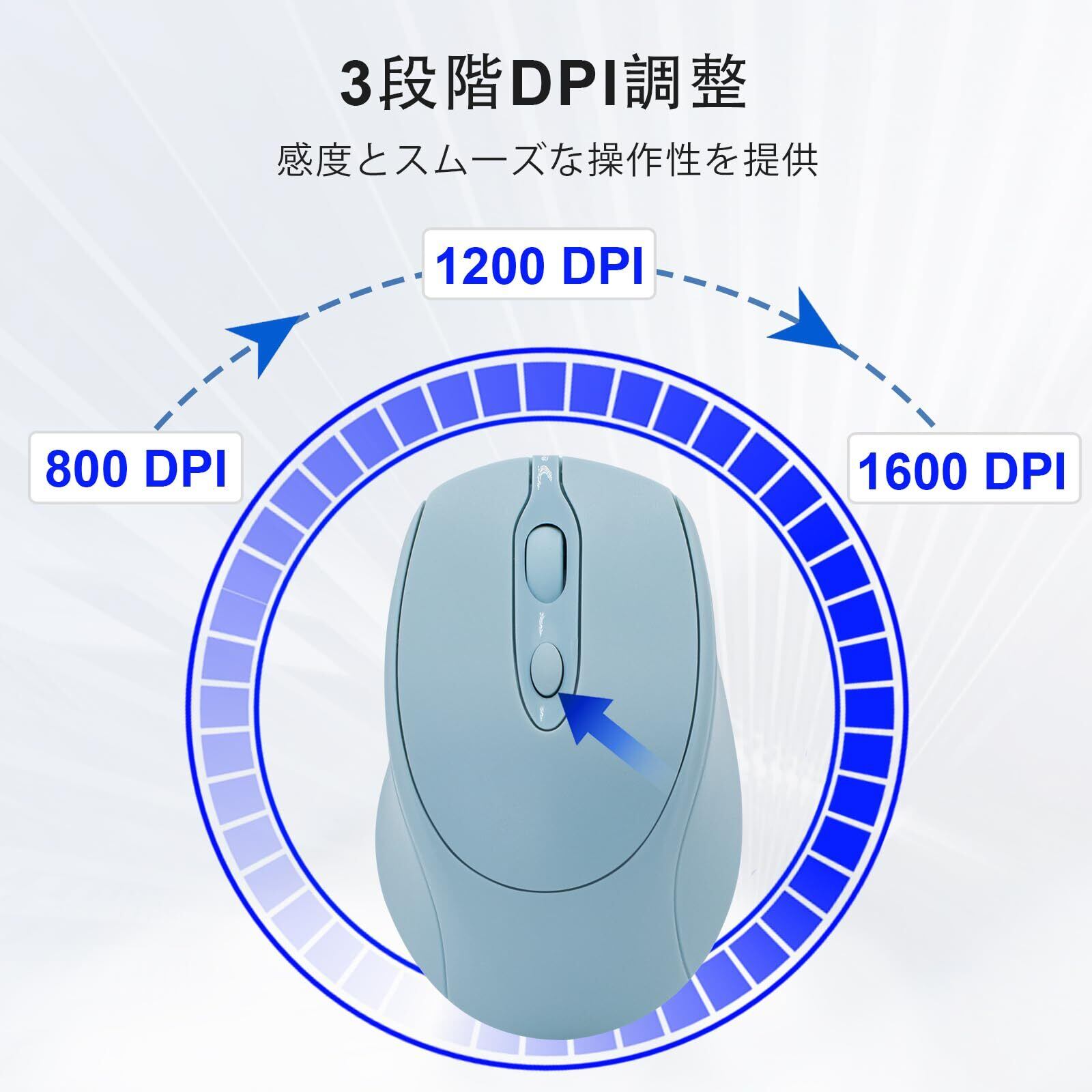 3段階DPI切替:無線マウスは簡単ボタン操作で800/1200/1600DPIの間で切り替え、ブルートゥース マウスのスピードを自由に切り替えられ、より精密な操作が可能です。