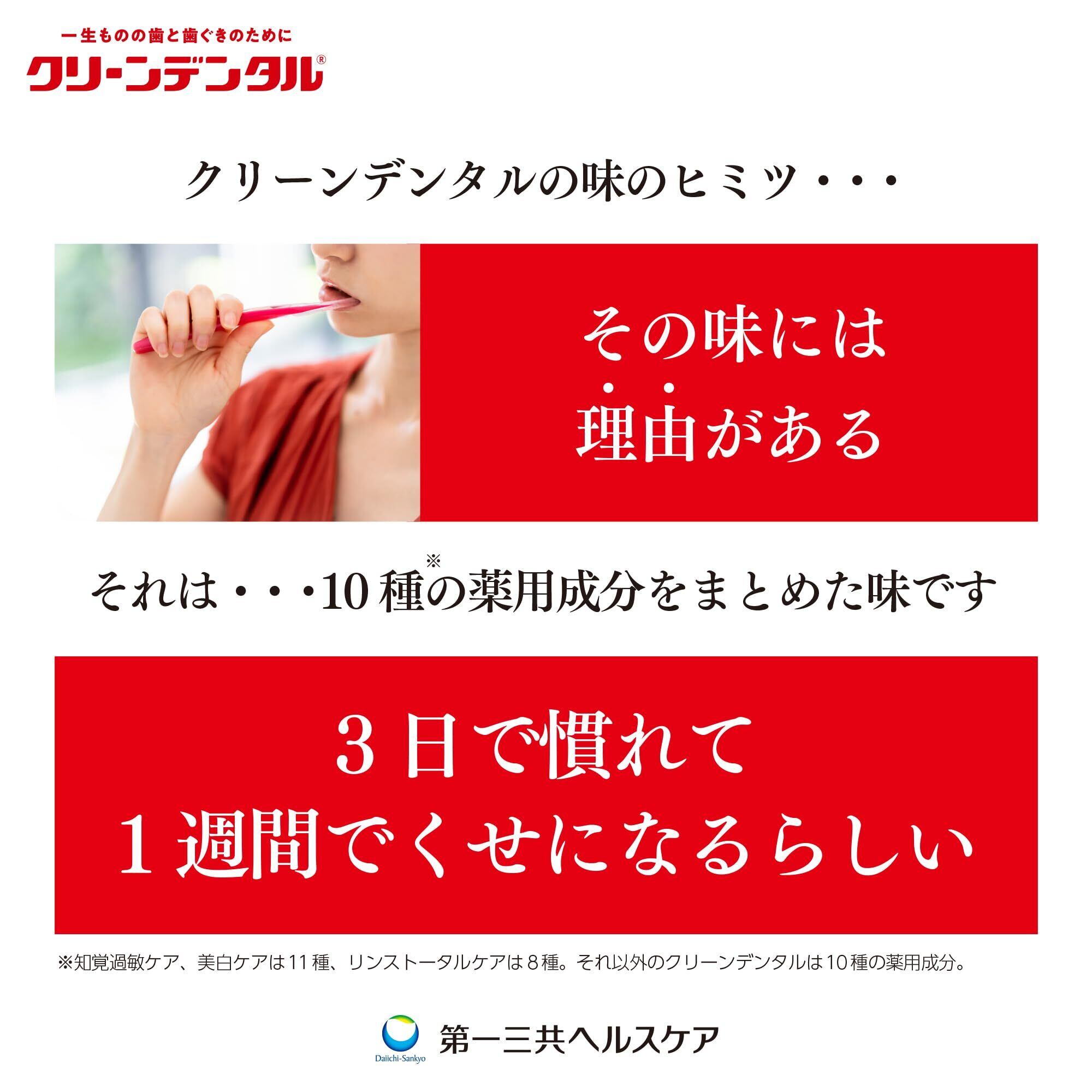 【1985年から続くロングセラー商品クリーンデンタルとは】製薬会社が開発した「歯周病予防歯みがき」というコンセプトの下、製品の開発がスタートし、1985年にクリーンデンタルを発売。確かな効果感と独特の使用感で、歯周病ケア意識の高い方に選ばれ続けています。※歯周病とは歯肉炎・歯槽膿漏(歯周炎)の総称です。