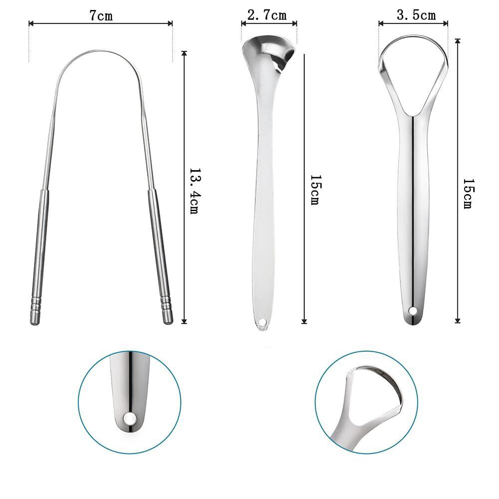 【舌ブラシ仕様】 テンレス鋼製の舌ブラシ3本セット(U字型/開口タイプ/スプーン型)、収納ケース付。保管、持ち運びが簡単で、家族、出張、旅行に適しています。