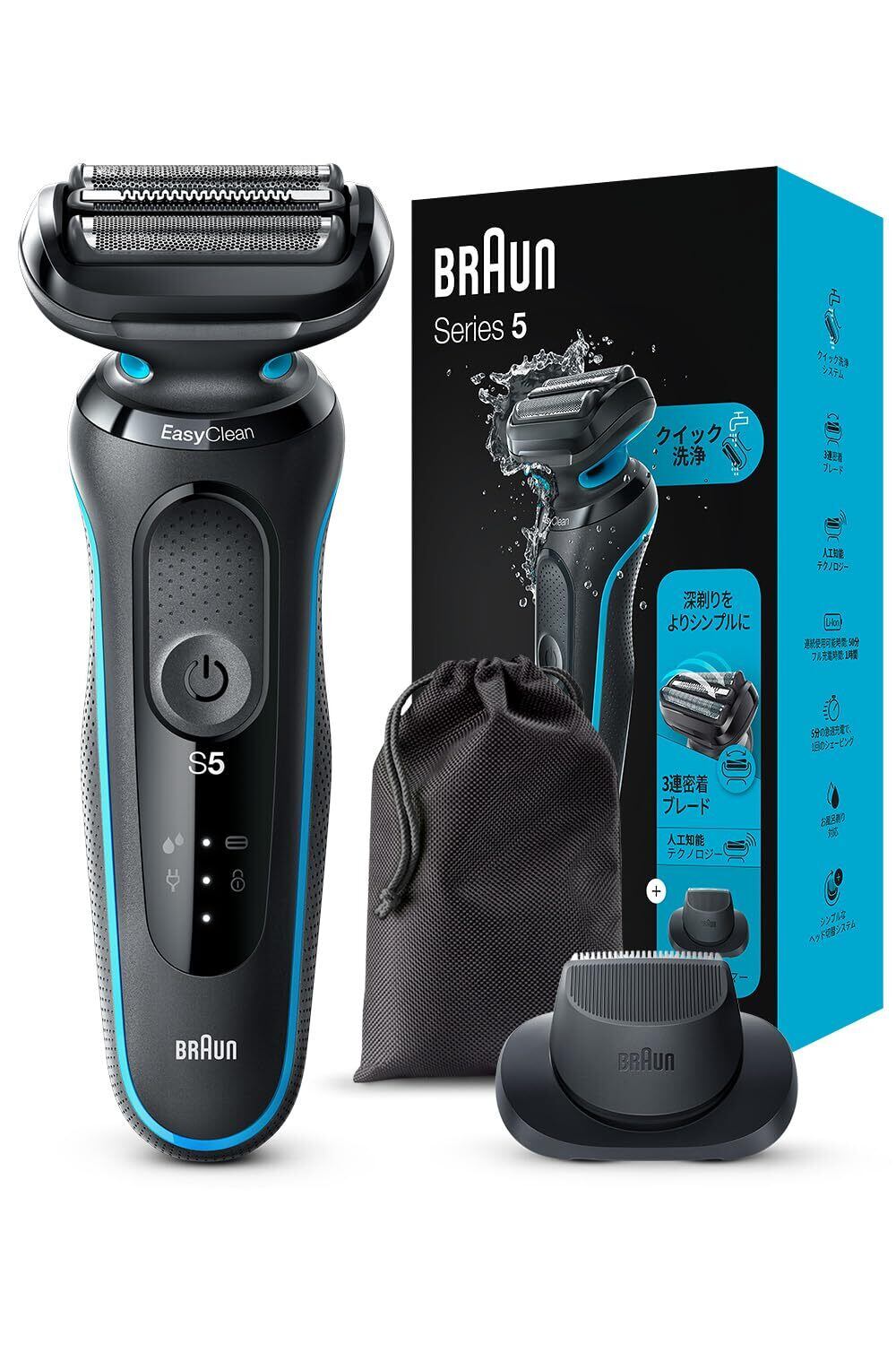 ブラウン シリーズ5は3連密着ブレードを搭載したシェーバーで、肌の凹凸にシェーバーヘッドがしっかり密着した状態で髭剃りすることで、簡単に深剃りを実現。
