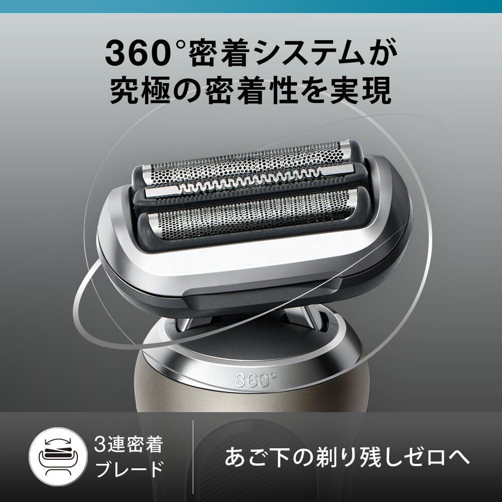 シリーズ7は360°密着システムを搭載。”3つの刃の浮き沈み”、”前後の首振り”に横の動きも加わった究極の密着性を実現。全方位への動きが可能となり、密着が難しく、剃り残しが気になるあご下や鼻下でも密着します。あご下の剃り残しゼロへ