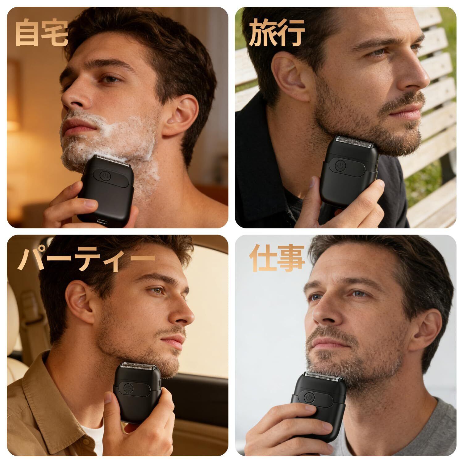 特徴 往復式電動シェーバ メンズ 小型 / 乾湿両用 /LED残量表示//超軽量/120分間連続使用/typc- c充電式高速充電//IPX7防水・ 洗い可