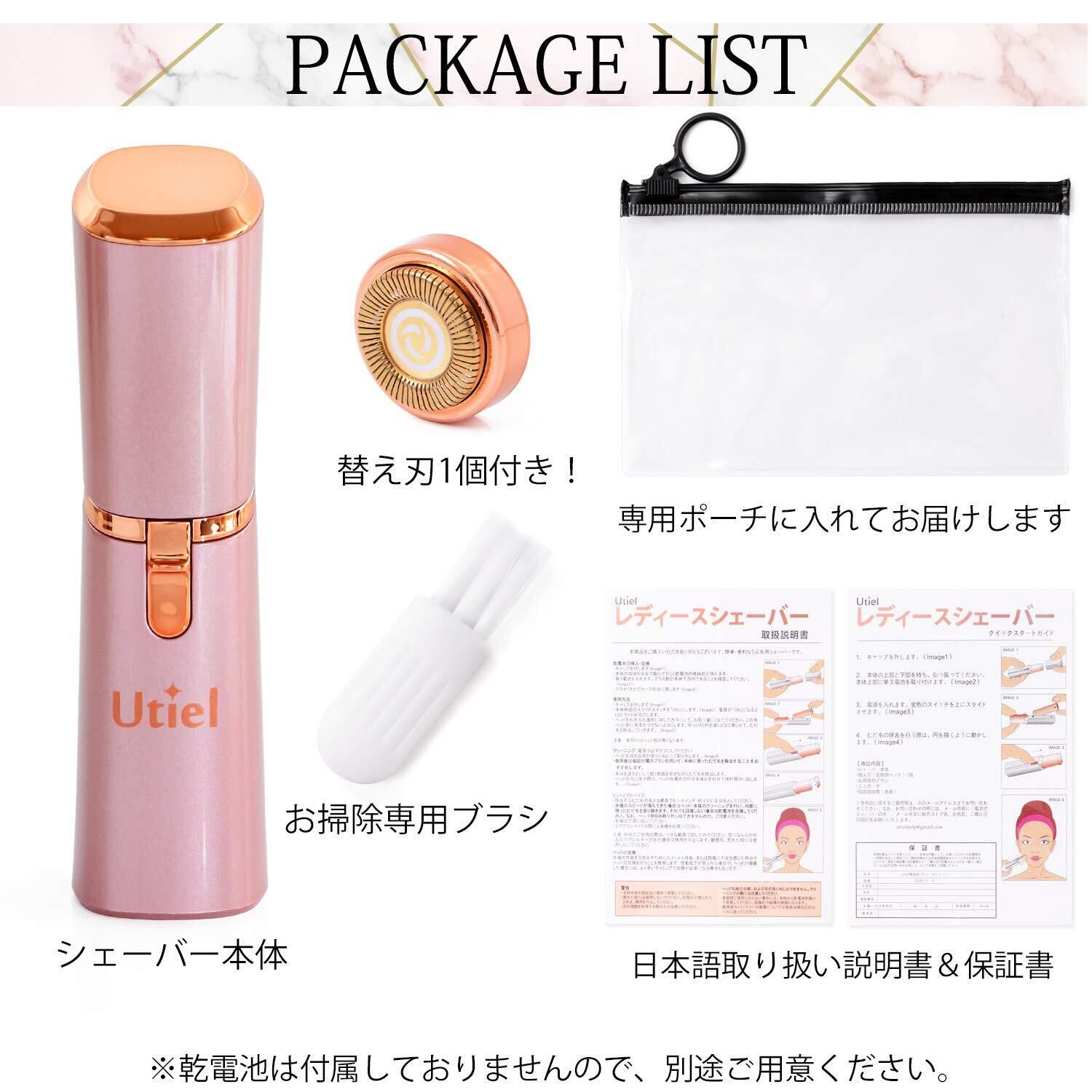 [Utiel]レディース シェーバー 女性 電動 誕生日 プレゼント ポーチ 替刃 付 防水 産毛 顔 剃り電池式 日本語説明書 (ローズピンク)