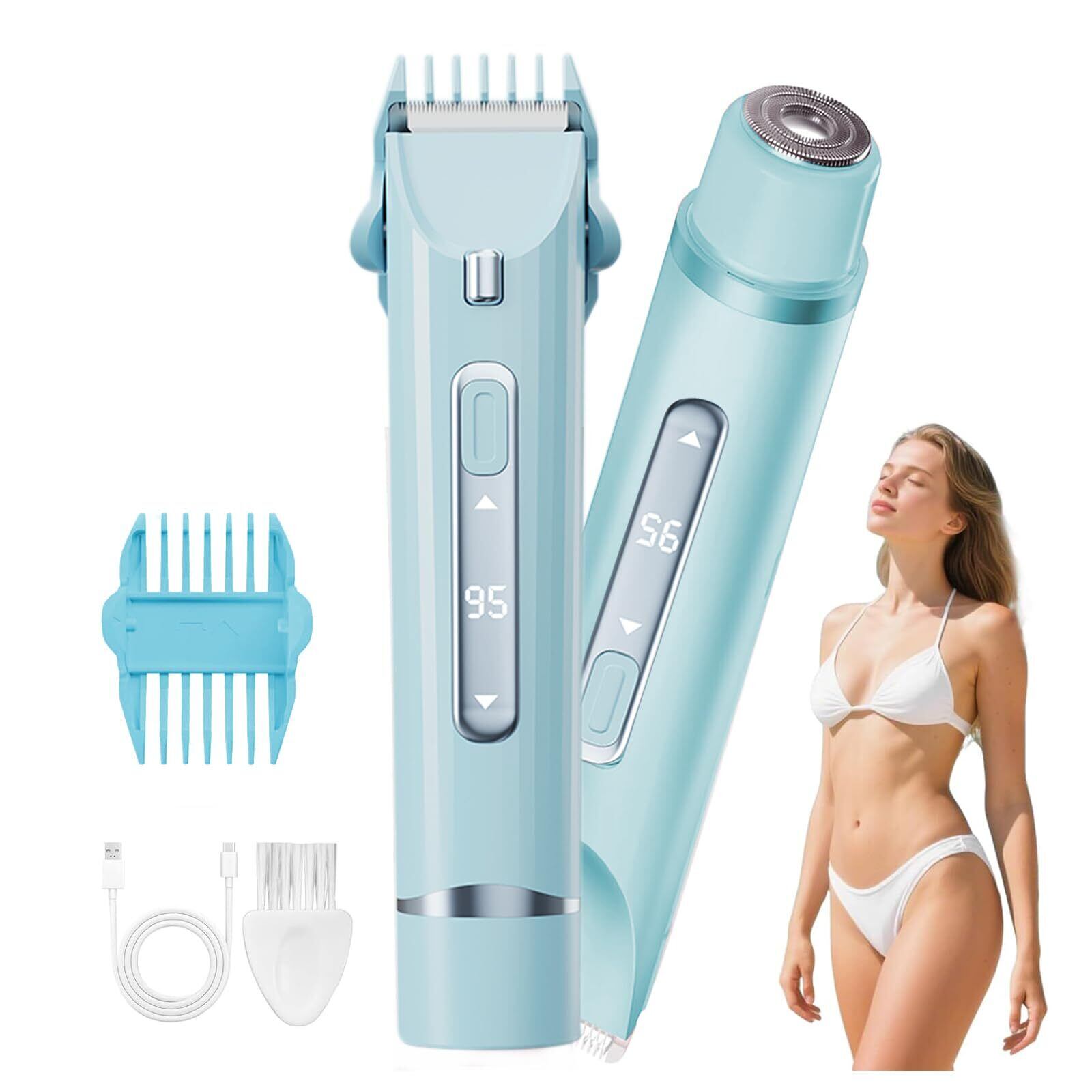 【使いやすく、痛みのない脱毛】手剃りによる切り傷のリスクを回避。当社の電気シェーバーは、櫛状のトリマーと3Dフローティング円形刃ヘッドを一体化した2枚刃設計を採用しています。使い方は簡単です。まず、トリマーヘッドが長い毛を優しくトリミングし、次に回転刃ヘッドが短い毛をしっかりとキャッチして、滑らかなシェービングを実現します。剃り残しを最小限に抑え、全身のムダ毛を素早く除去します。この女性用電気シェーバーは省スペースで、優れたコストパフォーマンスを提供します。VIOシェーバー、ボディシェーバー、フェイスシェーバーを別々に購入する必要がなくなります。