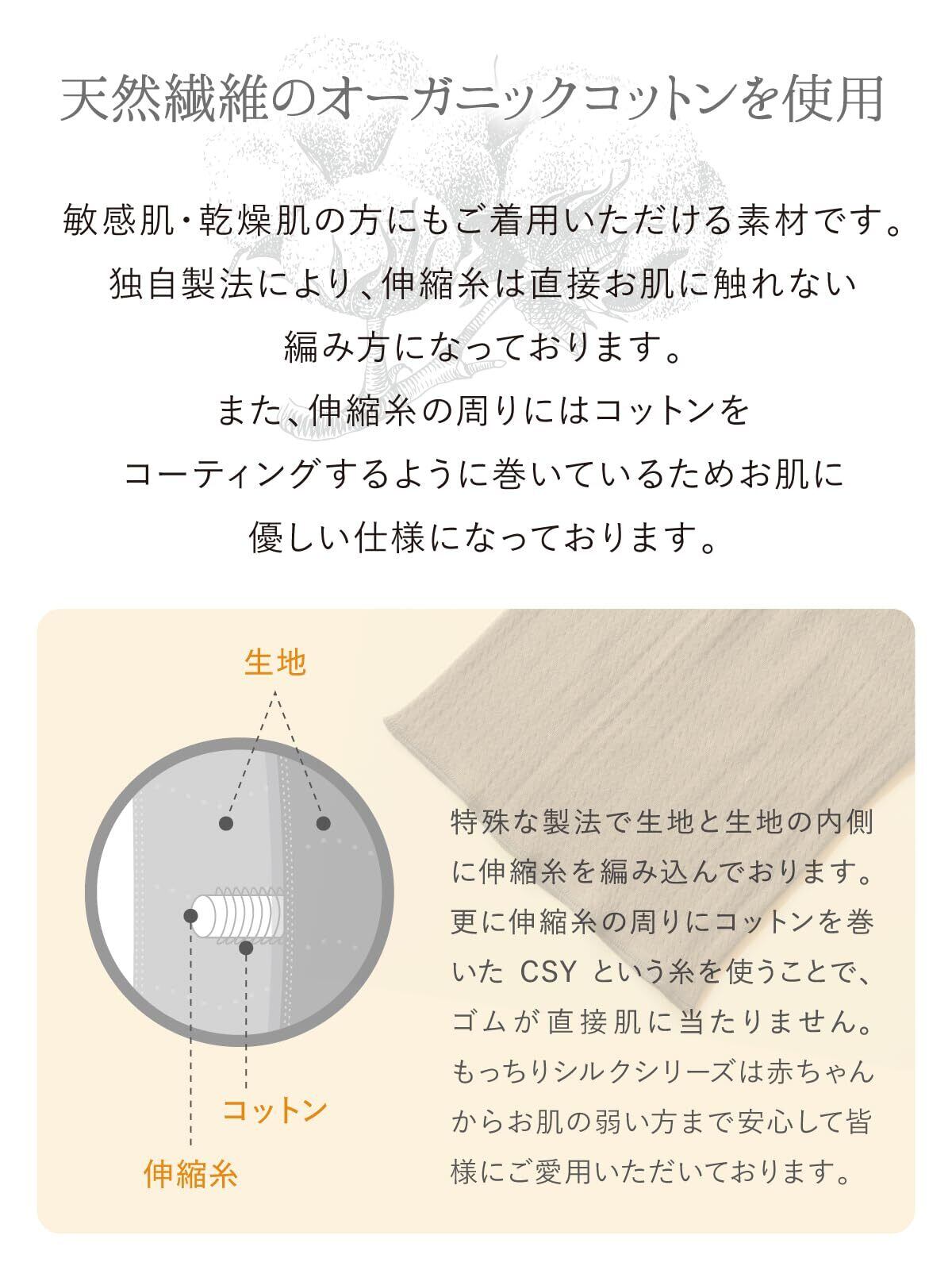 【オーガニックコットン100%】綿ならではの滑らかな糸を丸編みによって作っています。もっちりオーガニックコットン腹巻きは肌馴染みがよく長時間つけていても蒸れづらいという特徴があります。※別途ゴム糸を使用していますが、特殊な製法により肌に直接触れることはありません。※洗濯時は洗濯ネットに入れていただき、中性洗剤のみのご使用を推奨します。