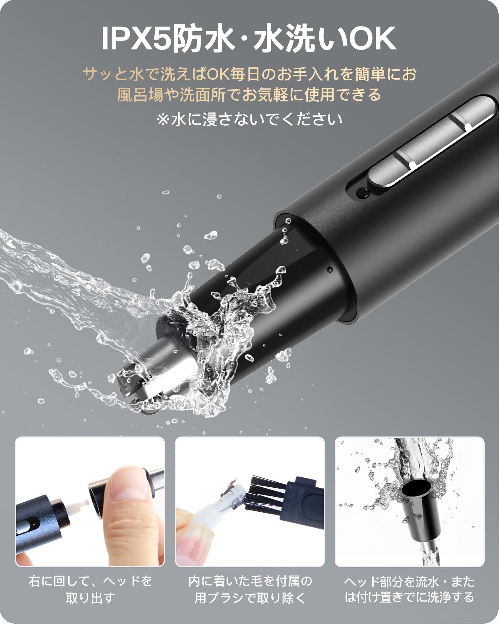 【IPX5防水&お手入れが簡単】電動カミソリ 男性用は防水できます。鼻毛切りの先端は、外して直接にすすぐことができ、残留物や細菌の繁殖を防ぎ、いつでも清潔に保つことができます。まゆけシェーバーはヘッドを取り外して洗うこともできます。 ユニークな双頭清掃ブラシは、髭剃り 電動 メンズシェーバーを簡単にお手入れができながら、眉毛剃りの清潔を保つことができます。注意:洗浄後すぐに水の汚れを拭き取り、産毛カッター本体を水に浸さないでください。