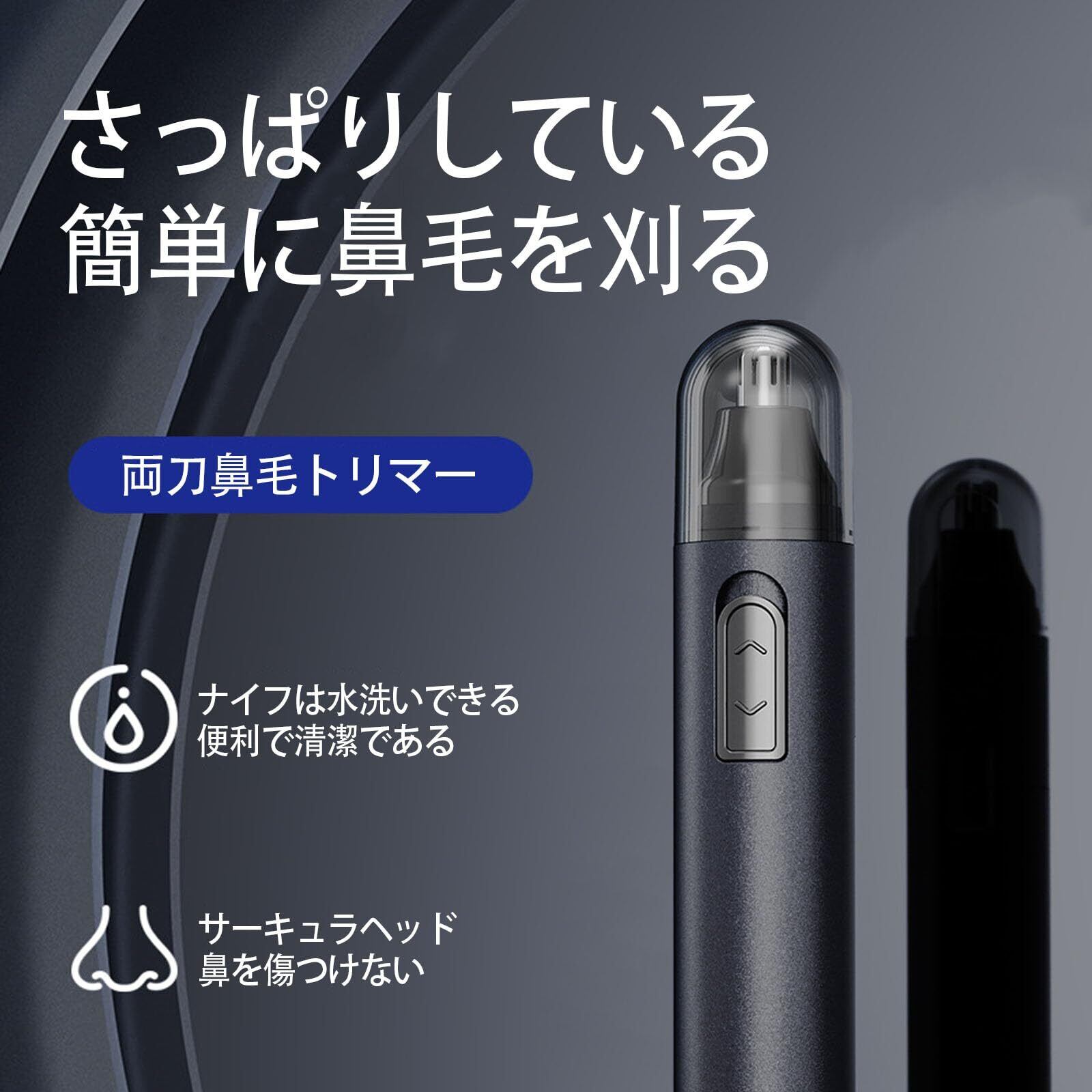 内蔵された両刃が鼻腔に密着し、素早く鼻毛を切りながら鼻腔を傷めません。使用後はヘッドを取り外して簡単な内部洗浄ができます。