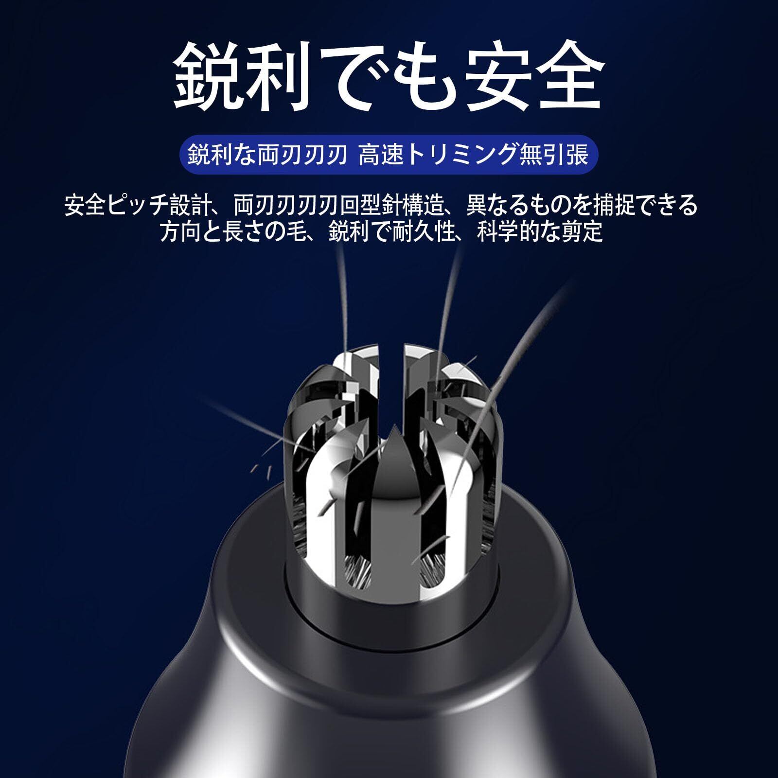 360度回転するダブルロータリーブレードが採用され、鼻毛を引っ張らずに、どの方向の鼻毛もすばやく処理できます。