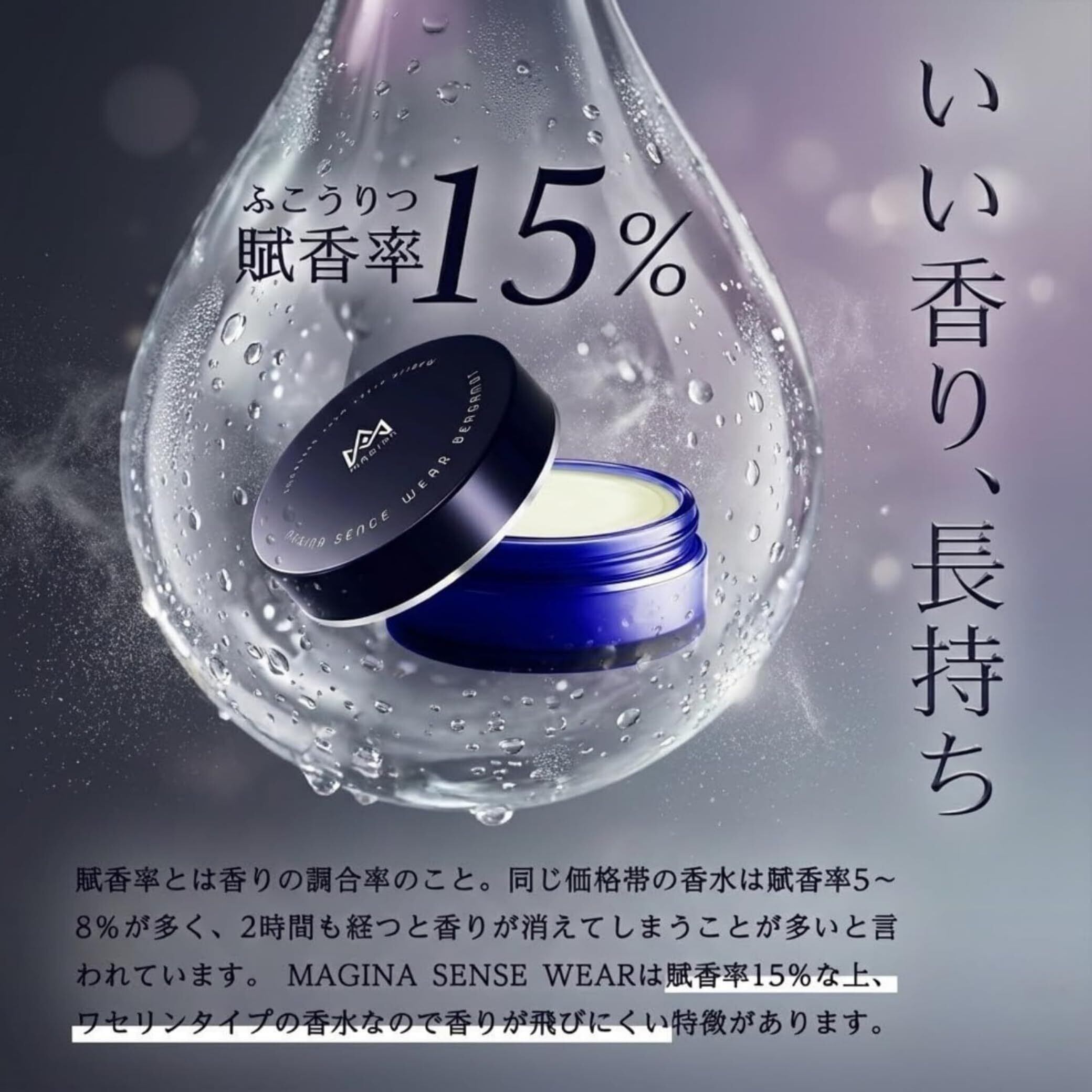 【使いやすさにこだわった練り香水】指先で1〜2回軽く塗るだけで適量使用可能。コンパクトなサイズで持ち運びにも便利で、約2〜3ヶ月継続使用できる実用性も魅力。ビジネスからデート、合コンまで、様々なシーンで活躍するアイテムです。