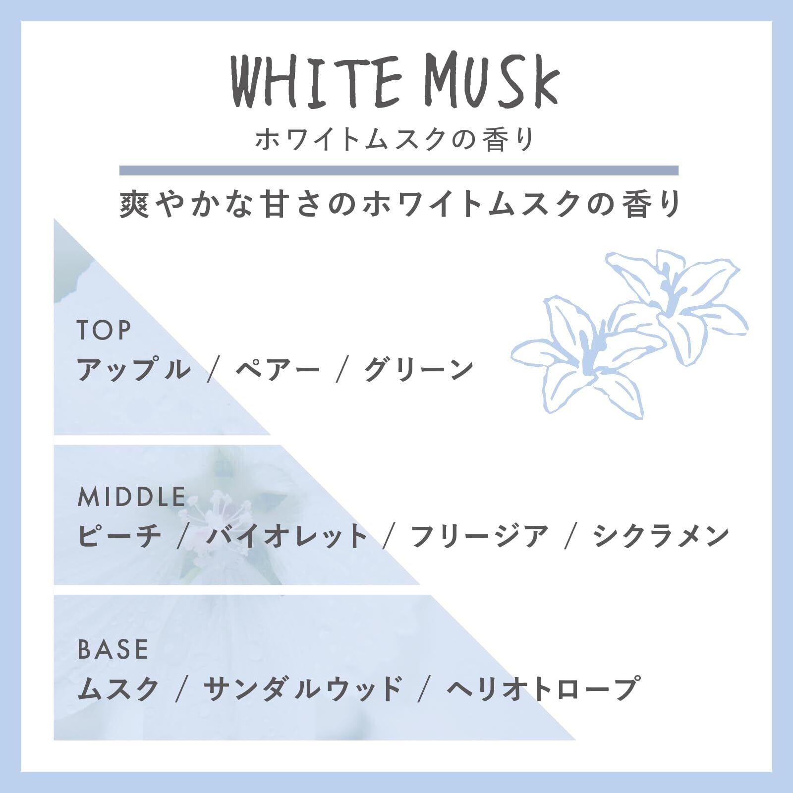 サボン系の爽やかさとホワイトフローラルのほのかな甘みがクセになるホワイトムスクの香り