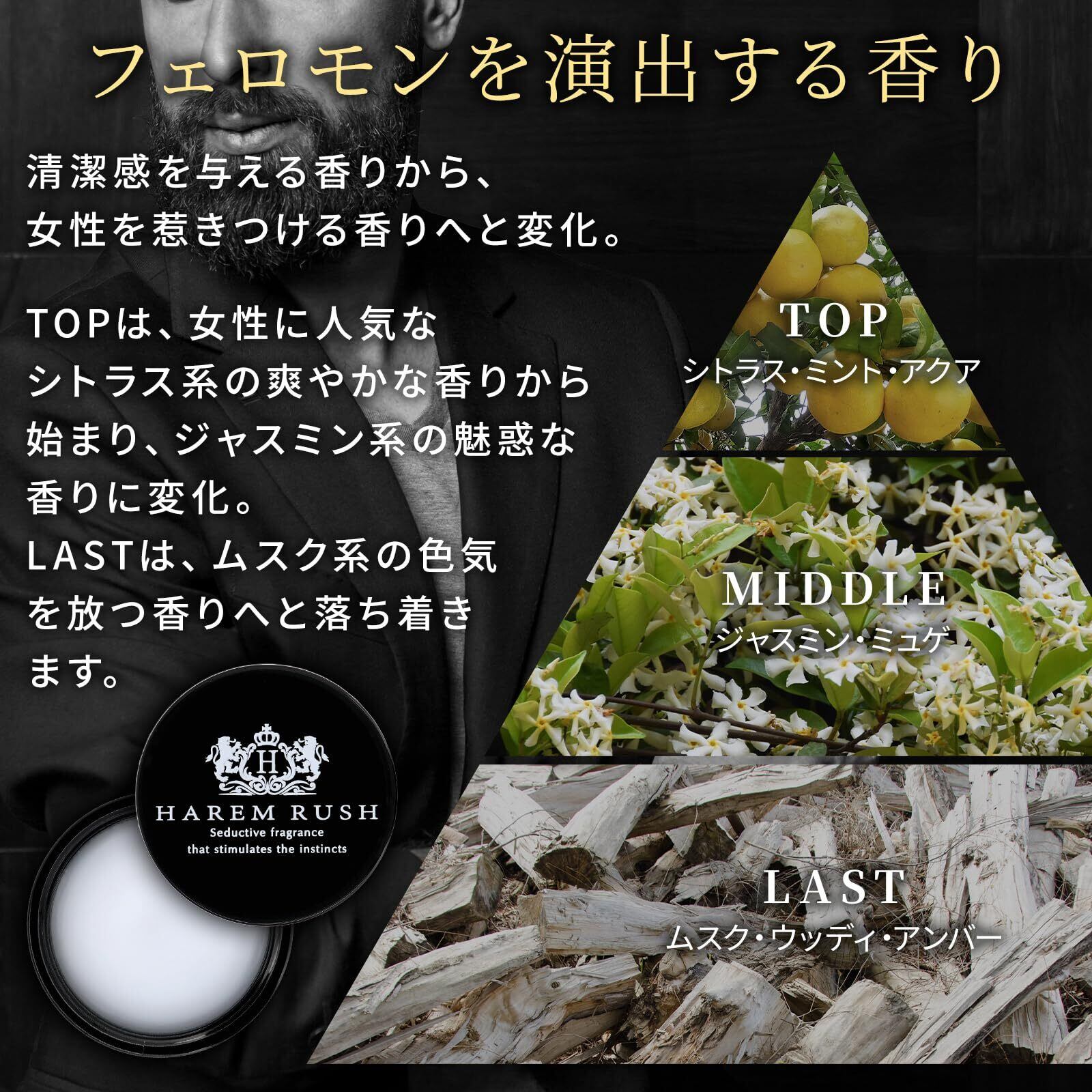 【フェロモンを演出する香り】ハーレムラッシュの魅惑の香りは、自身が本来持つ色気、つまり「自分のフェロモン」を際立たせてくれる香りです。