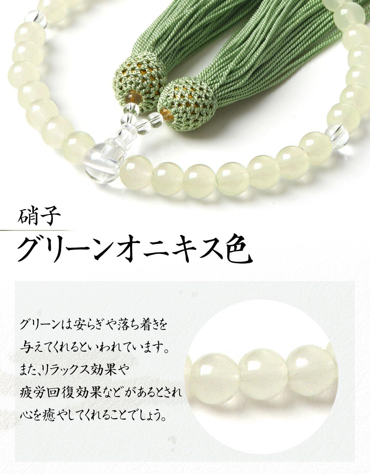 数珠 女性用 8mm 頭房 硝子 略式数珠 すべての宗派で使える 選べるお色 法事 葬儀 数珠袋付き 天然石色 人絹房 (グリーンオニキス色)