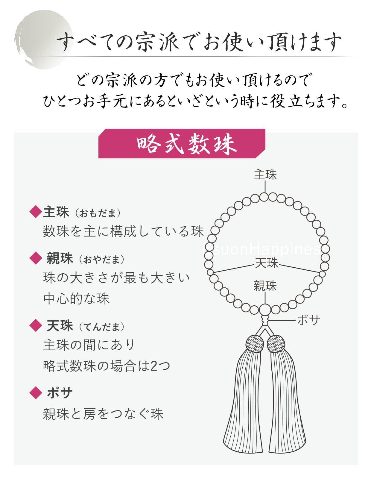 【すべての宗派に使用可能】略式数珠ですので、すべての宗派でご使用頂けます。 女性に人気なカラーバリエーションも揃え幅広い年齢層にご使用いただけます。贈り物やプレゼントにも最適!