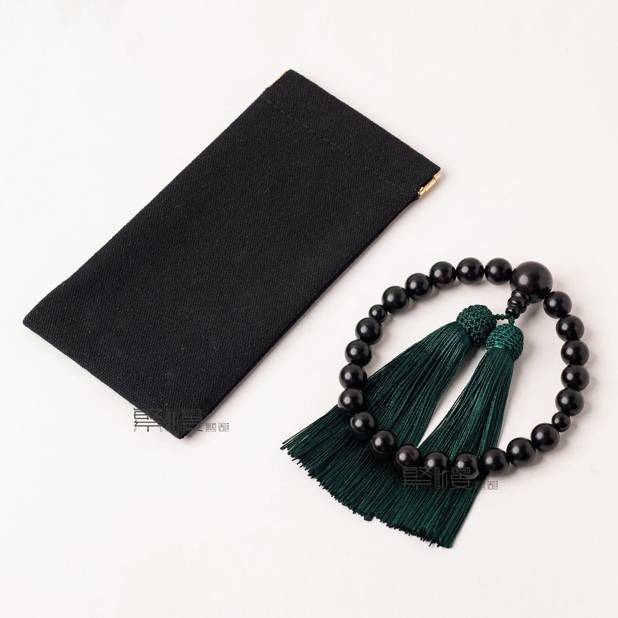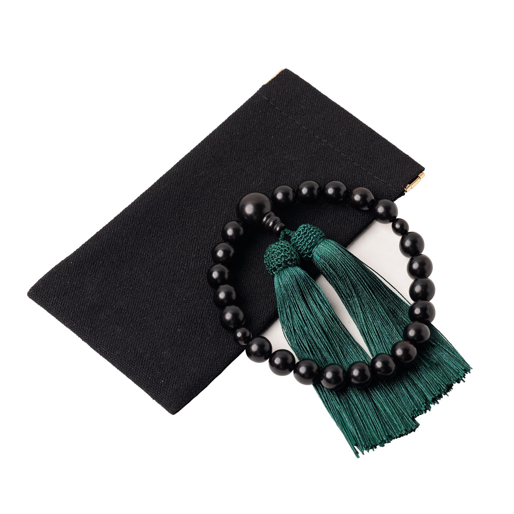 数珠 男性用 葬儀 念珠 縞黒檀 艶あり 25玉 数珠入れ 葬式 墓参り 法事 念誦 全ての宗派に使用可能 (天珠:縞黒檀, 房色:ふかみどり)