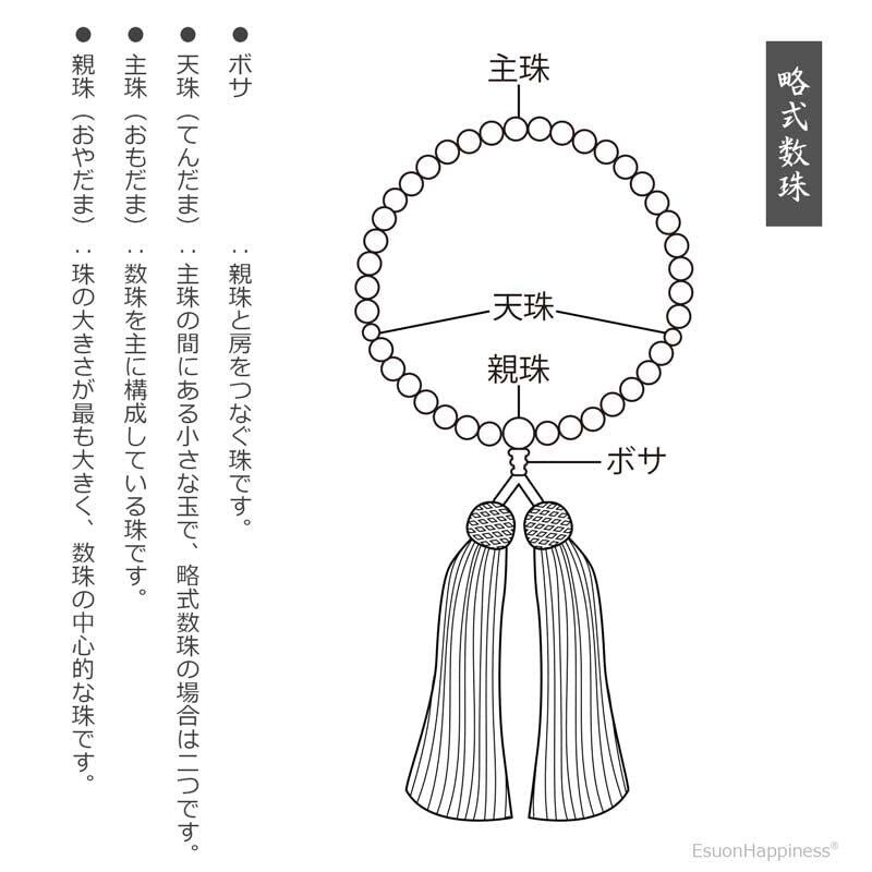 素材:親珠 天然石/12mm玉<br> 主珠 圧縮貝パール/8mm玉<br> 天珠 天然石/6mm玉<br> ボサ 天然石<br> 房:人絹頭房