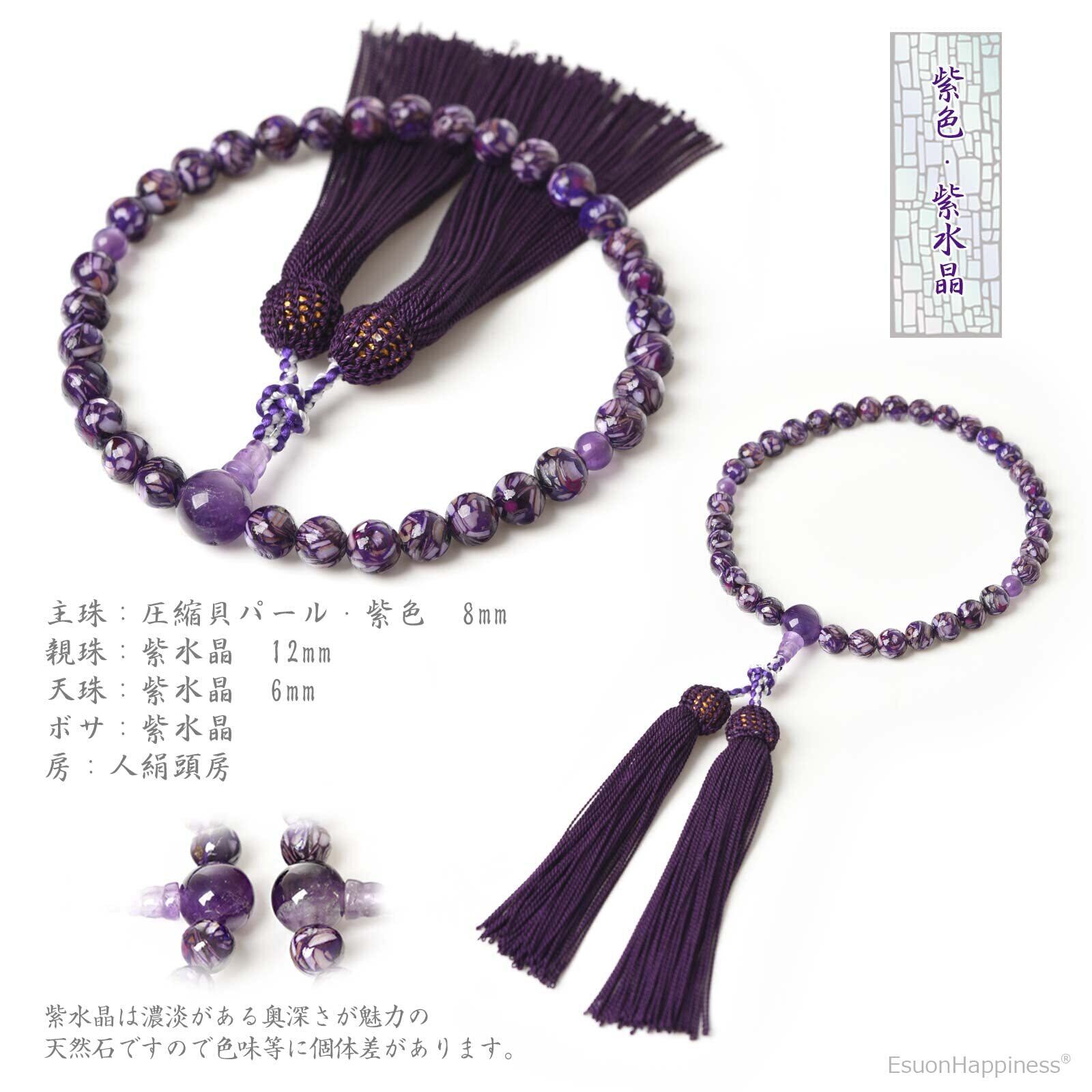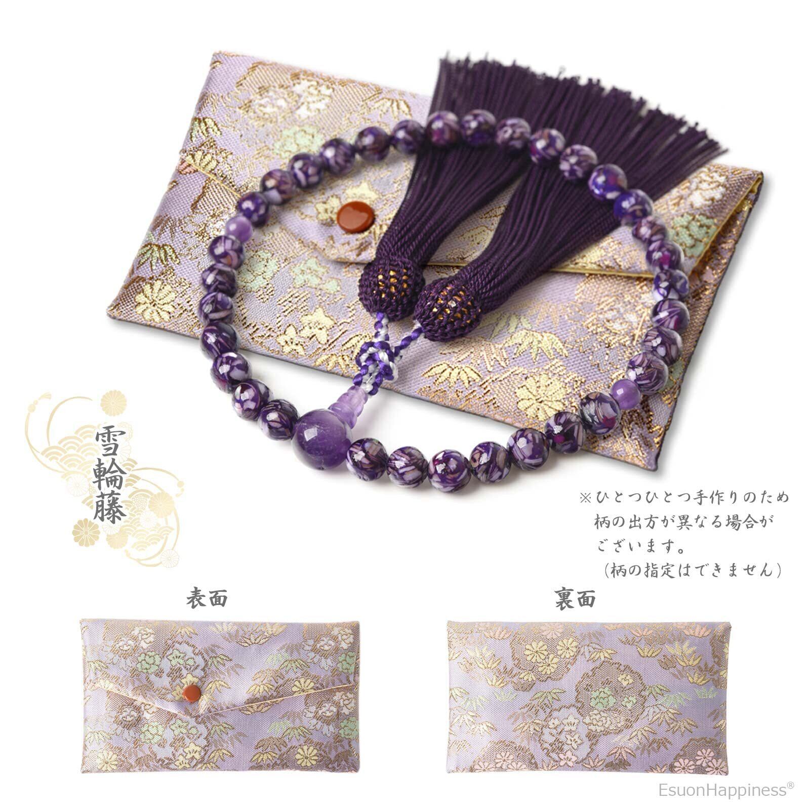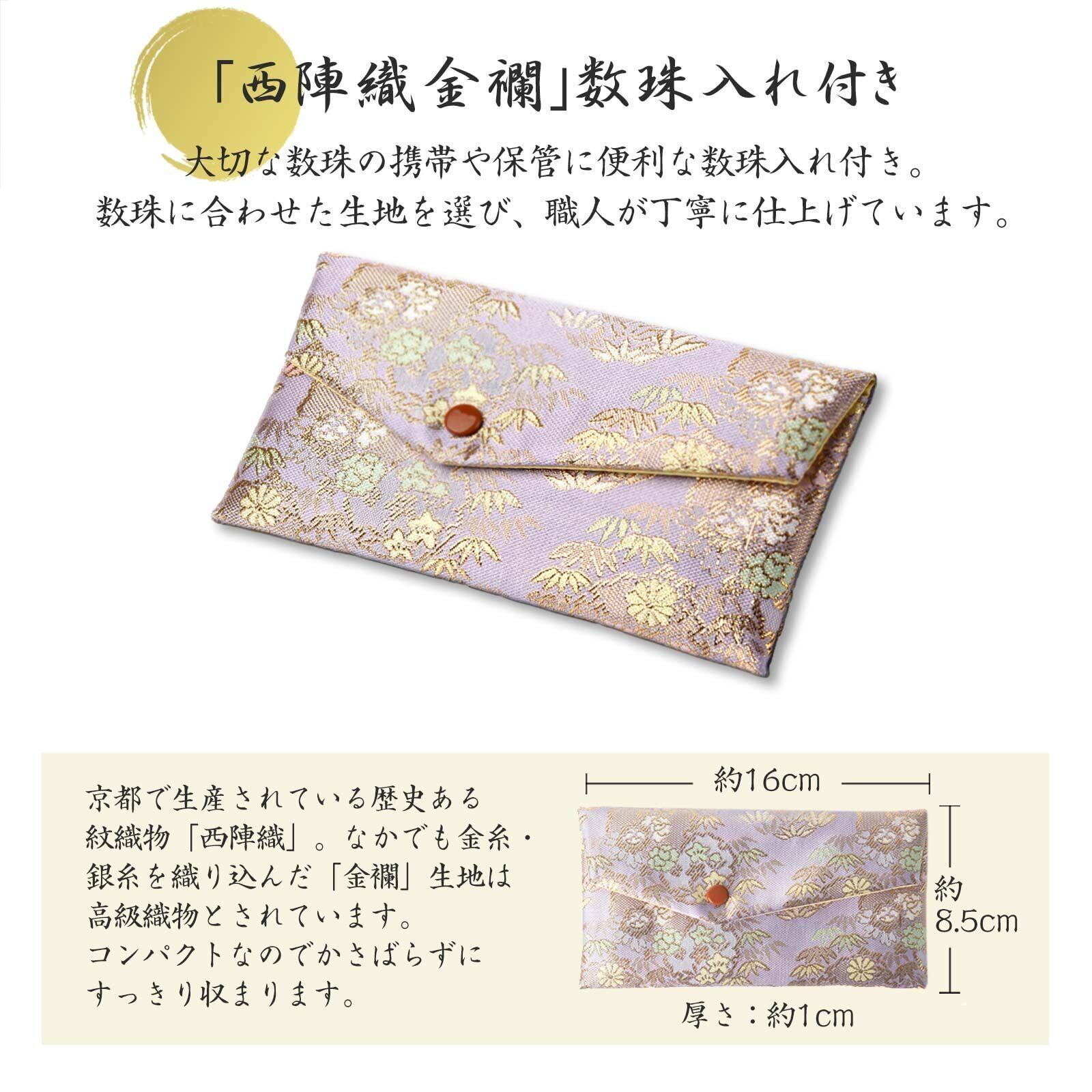 数珠 女性用 西陣織金襴 数珠袋付き 天然石 紅水晶 印度翡翠 赤めのう オニキス 念珠 圧縮貝パール8mm