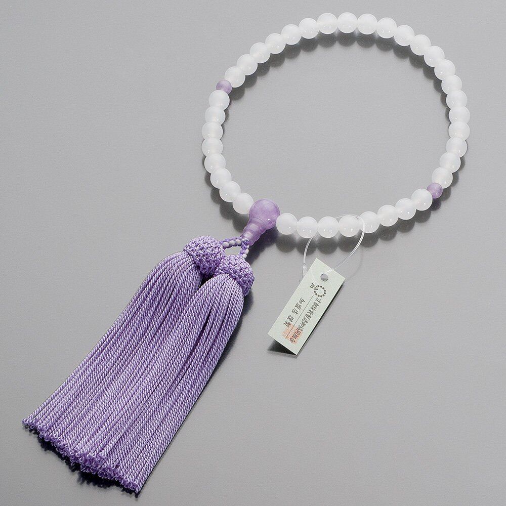 仏壇屋 滝田商店 京念珠 数珠 女性用 白オニキス 紫雲石仕立 7mm玉 正絹頭付房 数珠袋付き すべての宗派で使える 証明書付