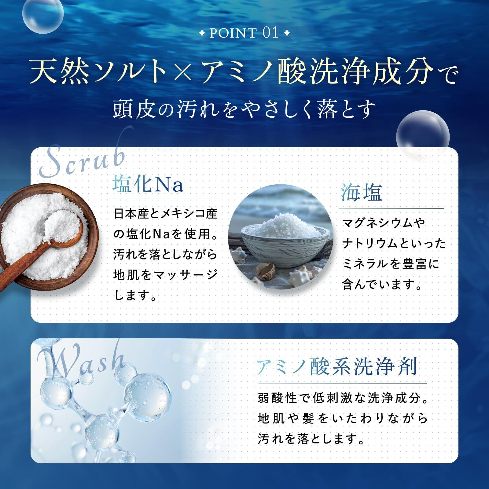 【微細スクラブで頭皮すっきりクリア】細かなスクラブ粒子が、普段のシャンプーでは落としきれない皮脂や汚れをやさしく取り除きます。摩擦感を抑えた処方なので、頭皮をいたわりながら心地よく洗えるのが特徴。洗い上がりは軽やかで、地肌がすっきりと整ったような清涼感を感じていただけます。