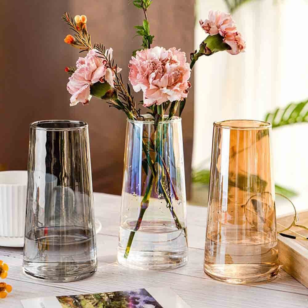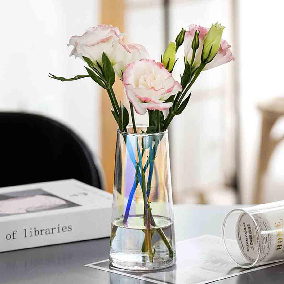 1. 高品質ガラス素材:この花瓶は、透明度が高く、美しい光沢を持つ高品質なガラスで作られています。精細な仕上げにより、表面が滑らかで、花や植物の自然な美しさを引き立てます。安全で環境に優しい素材を使用しており、家庭用として最適です。