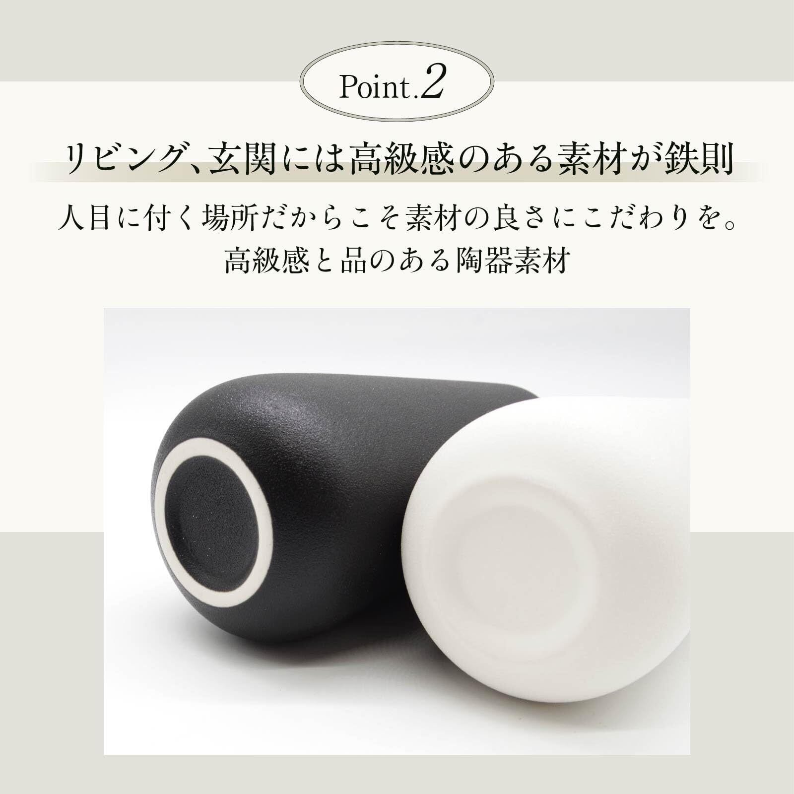 【安定感のある陶器素材】 適度な重みで倒れにくく安心。