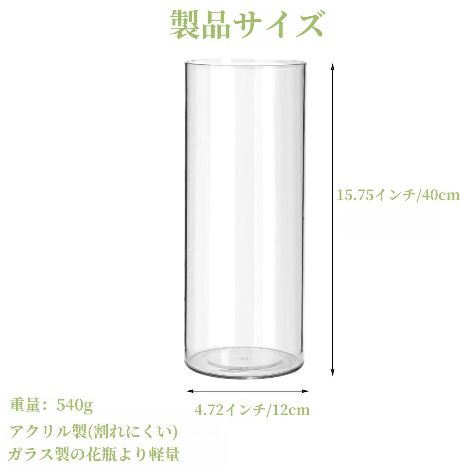 花瓶 割れない・軽量アクリル製 透明 フラワーベース 北欧風モダンデザイン 大型サイズ 水栽培/生花/造花対応 リビング・寝室・オフィスインテリアに 上品な贈り物にも (40cm×12cm)