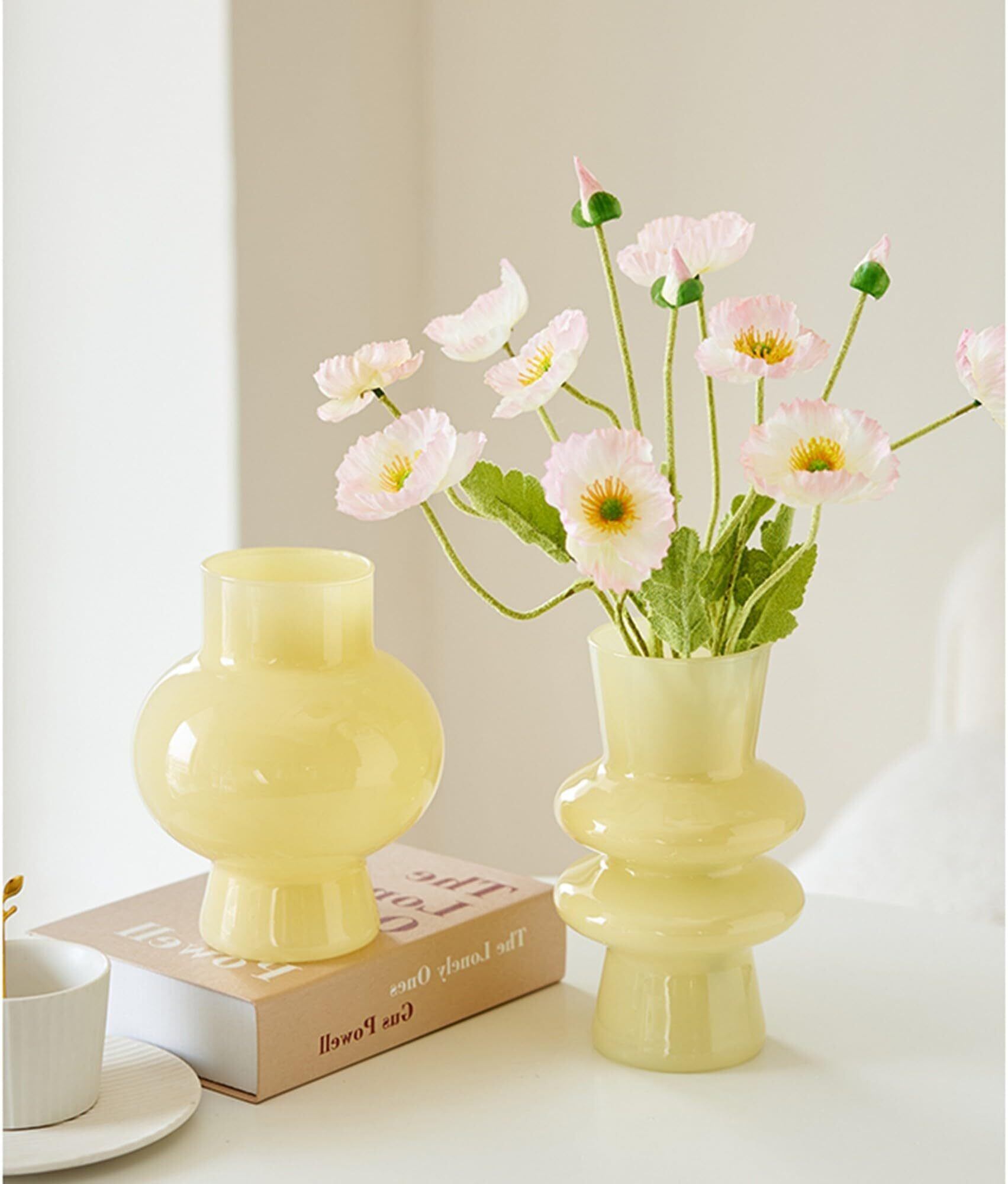 JSPYFITS 花瓶 ガラス 四層花瓶 高さ20cm 一輪挿し おしゃれ がびん ガラスベース 花器 水栽培 花びん 生け花 造花 贈り物 玄関、部屋、窓辺に(ミルキーイエロー) | 毎日発送✿はなまる