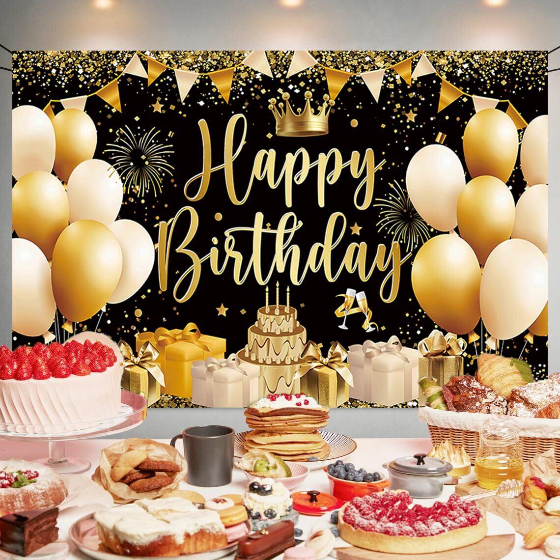 ブラックゴールド バースデー タペストリー ブラックゴールド ケーキ 誕生日 飾り付け バースデー フォトポスター 写真背景 Happy Birthday パーティー タペストリー おしゃれ 誕生日 デコレーション | 毎日発送✿はなまる