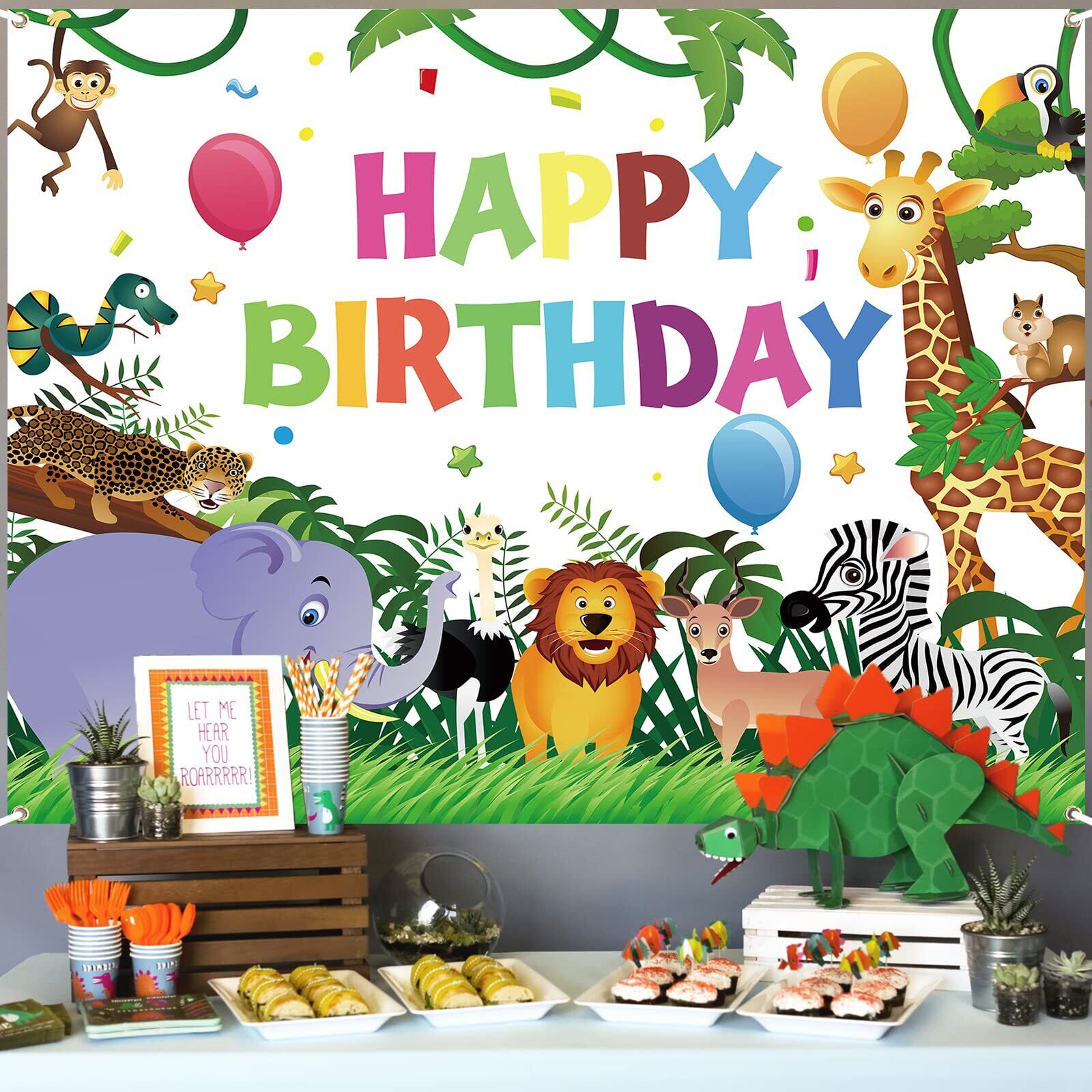 男の子向け動物テーマのバースデータペストリーです。たった1枚飾るだけでジャングルカラーや葉っぱモチーフを取り入れ、ワイルドなパーティー空間を演出します。壁に掛けるだけでおうちがフォトスタジオに早変わりし、記念写真や誕生日パーティーの飾り付けに最適です。お子様の特別な日の思い出作りにおすすめです