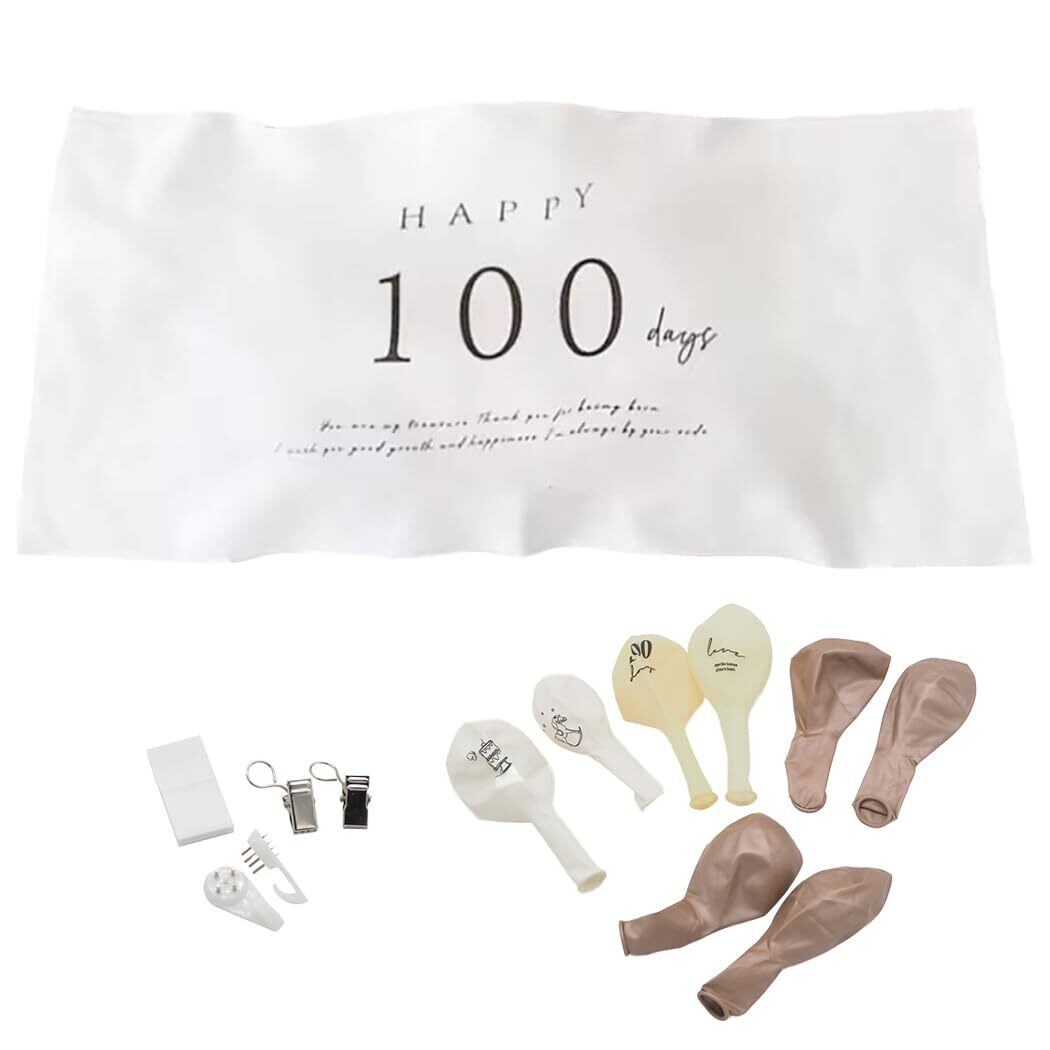 オーディオファン 100日記念 お祝い 飾り付けセット 9点 happy100days 100日誕生日 風船 バースデー 装飾 タペストリーサイズ 40cm*100cm