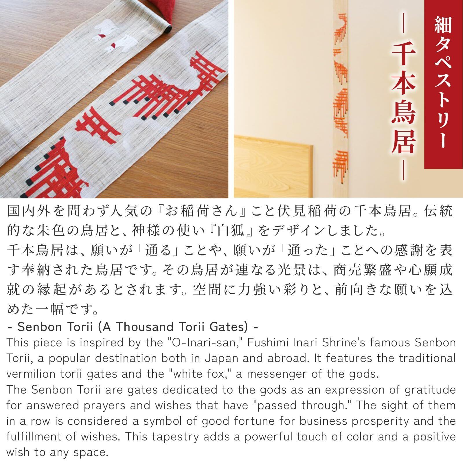 京都洛柿庵 細タペストリー ルシエール・ジャパン / 約10×170cm 麻生地 タペストリー 掛け軸 インテリア ディスプレイ 和モダン (通年, 千本鳥居)