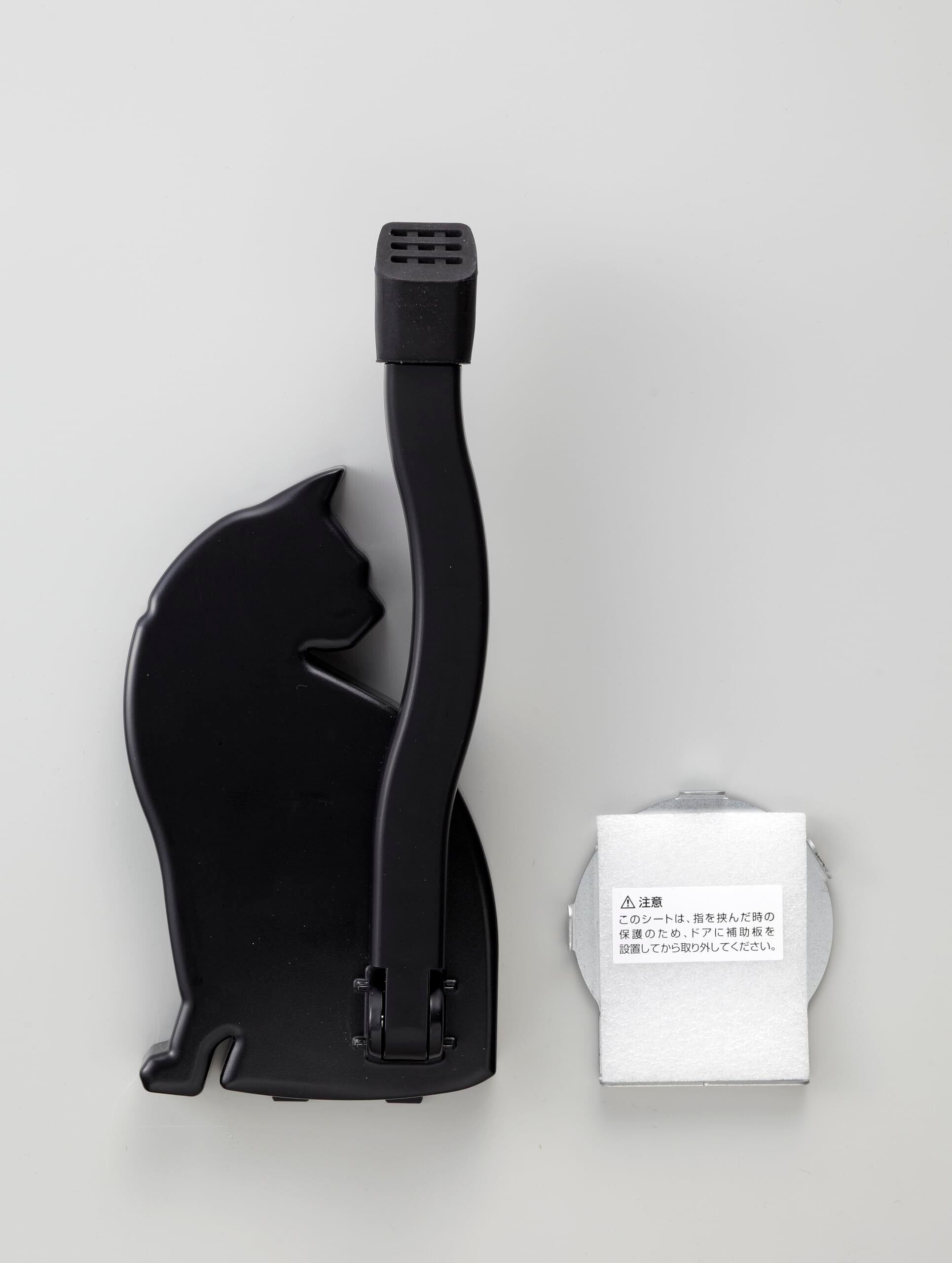 AKS-05 ドアストッパー ねこ ネコ 猫 マグネット式 折り畳み 玄関 簡単取付 室内 ゴム (ブラック)