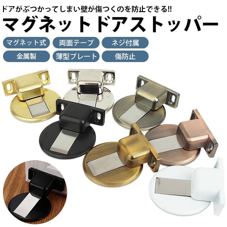 prendre マグネット式 ドアストッパー フラット 薄型 戸当り 強力 磁石 金属製 室内 ドア用 扉 DIY 金具 キャッチ ドア固定 ドア止め 両面テープ 固定ネジ付属 (アンティークブロンズ) PR-MAGSTO-ABZ | 毎日発送✿はなまる