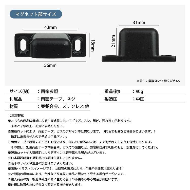 サイズ(約):画像参照 付属品:両面テープ、ネジ 材質:亜鉛合金、ステンレス 他 重量(約):90g