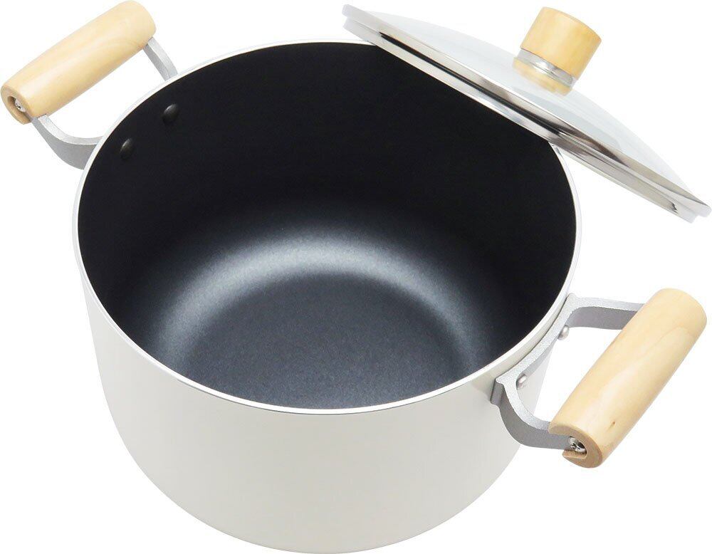 和平フレイズ(Wahei freiz) 両手鍋 22cm ガラス蓋付 ホワイト 木柄 IH・ガス対応 ノルディーズ NR-7976