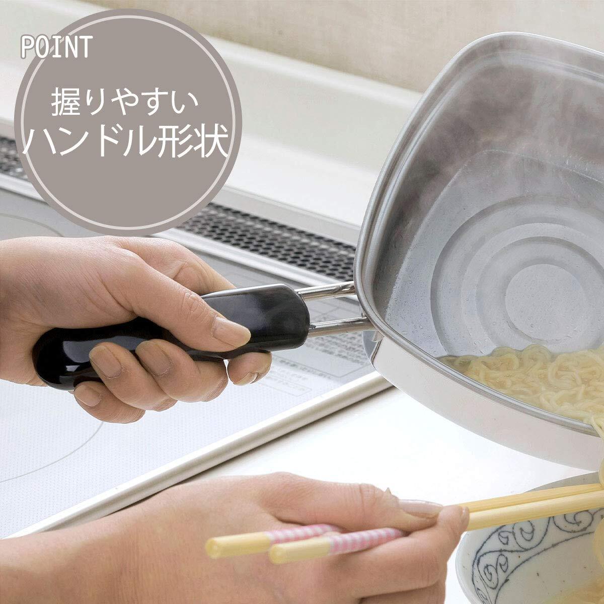 下村企販 片手鍋 角型 ラーメン鍋 15cm 直火・IH対応 1~2人用 インスタント麺がぴったり入る 角を使って移し替えられる 目盛り付き 1.8L 冷凍うどん そば ステンレス 燕三条 33107