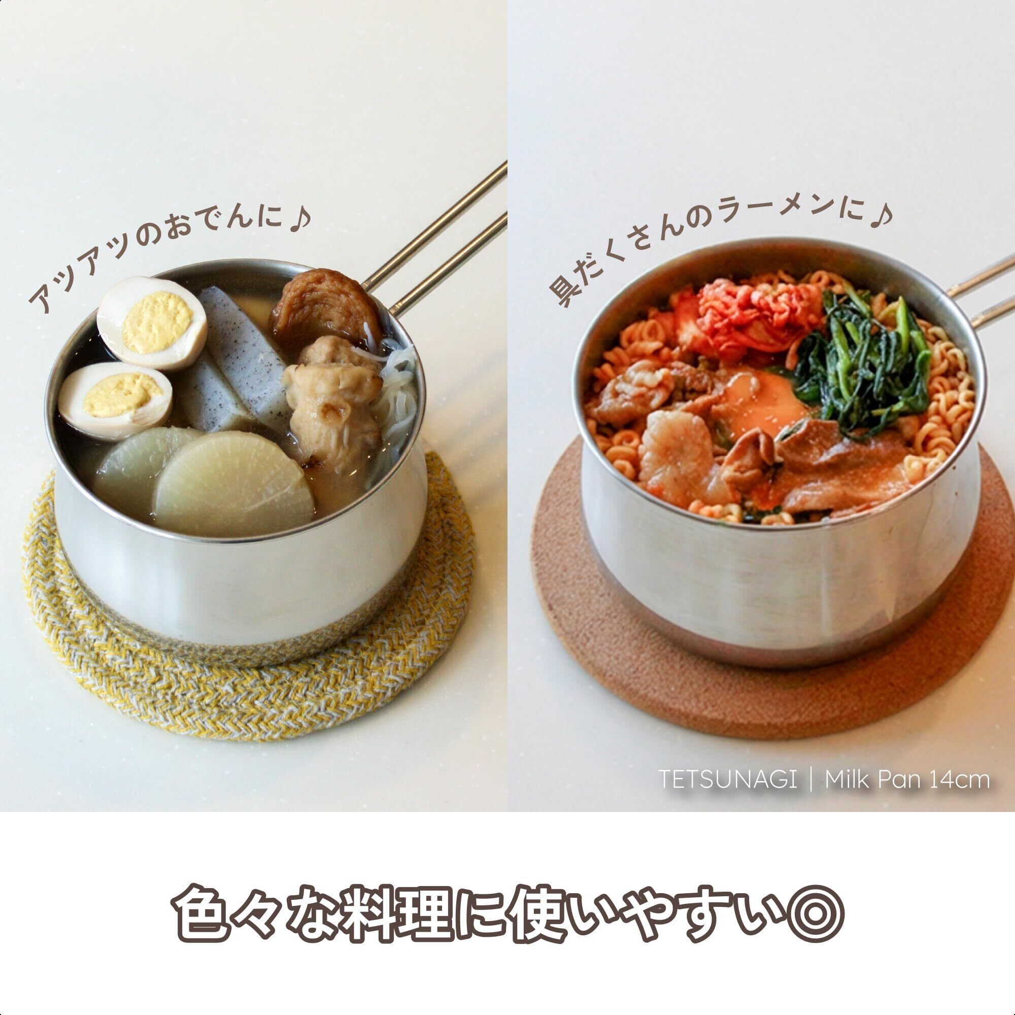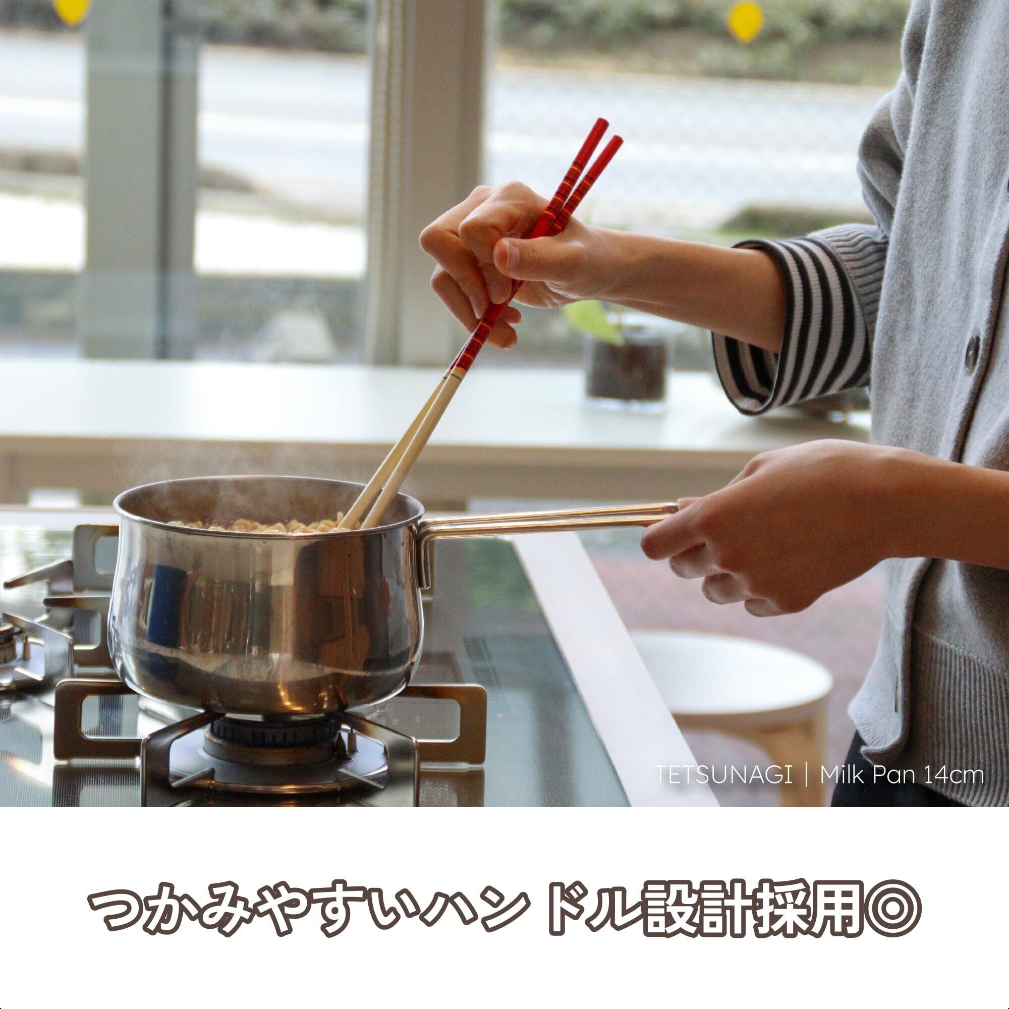 TETSUNAGI (テツナギ) 片手鍋 14cm ミルクパン 蓋付き 1L つぼ型小鍋 ステンレス製 ガス・IH200V対応|日々の調理に使いやすいサイズ T101200