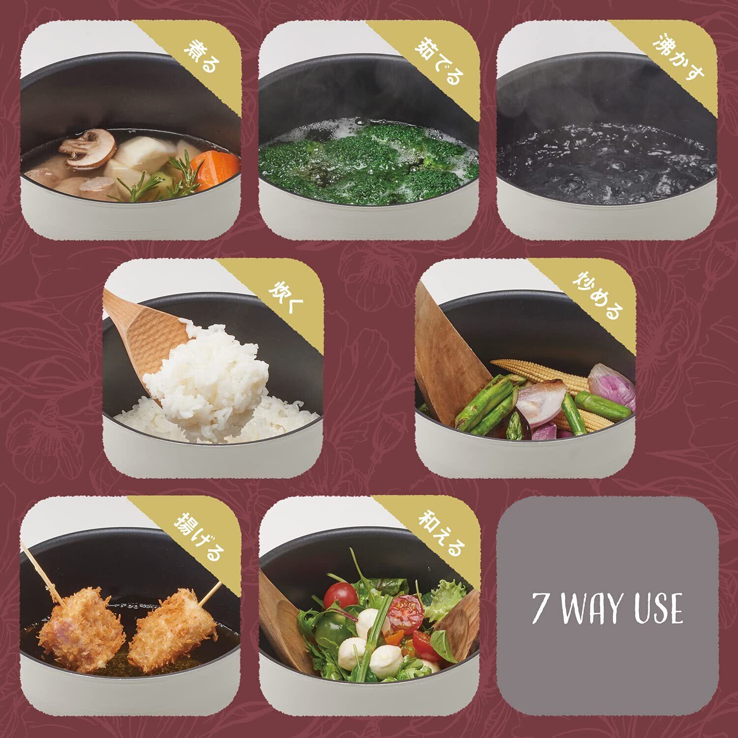 煮る・炒める・茹でる・沸かす・揚げる・炊く・和える、様々な調理に使えるので、たくさんあった調理器具がこれ一つに集約できます。シンク下やコンロ周りがスッキリ片付きます。