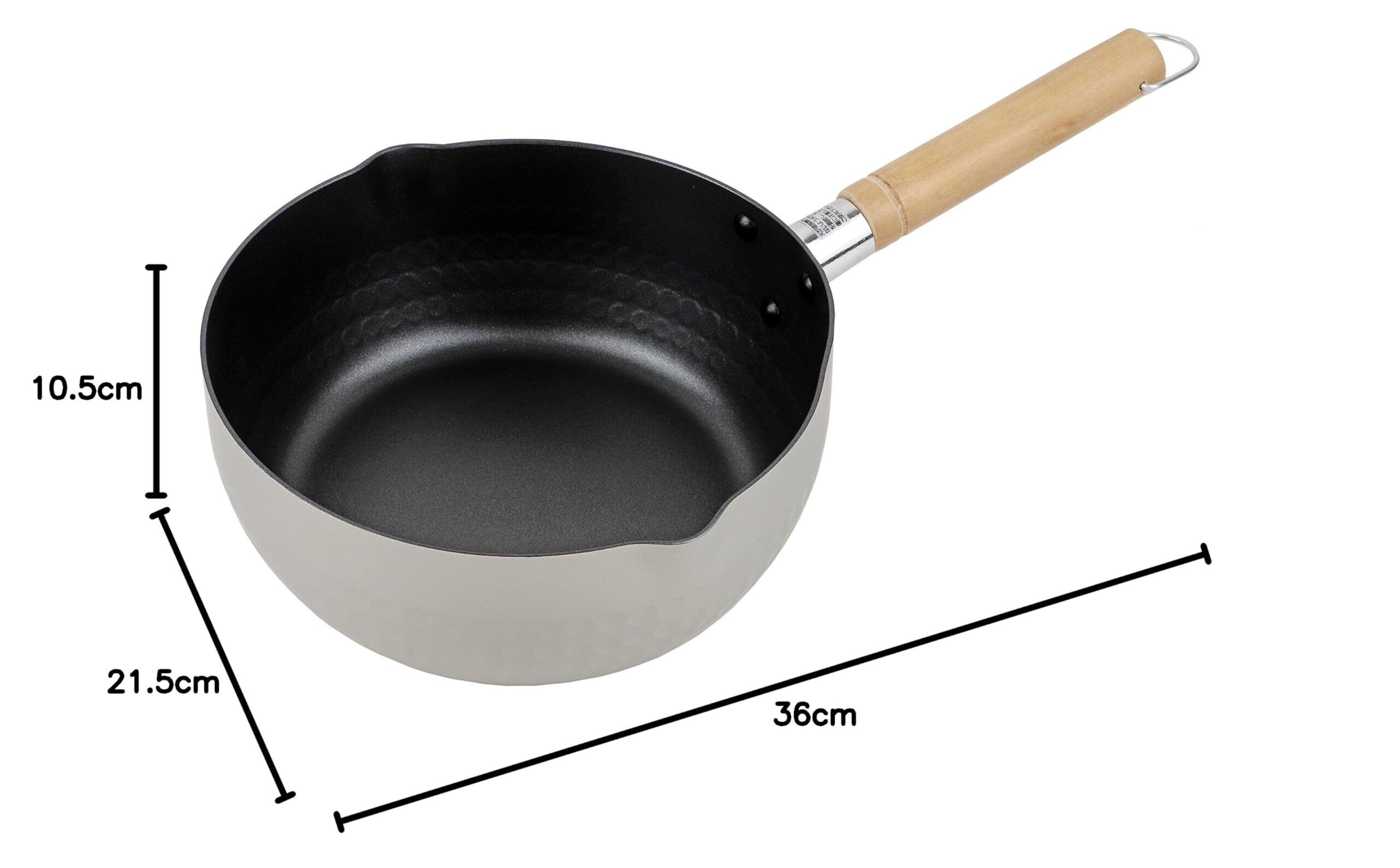 材質:本体/アルミニウム合金(内面 ふっ素樹脂塗膜加工、外面 アルマイト加工)、取っ手/天然木