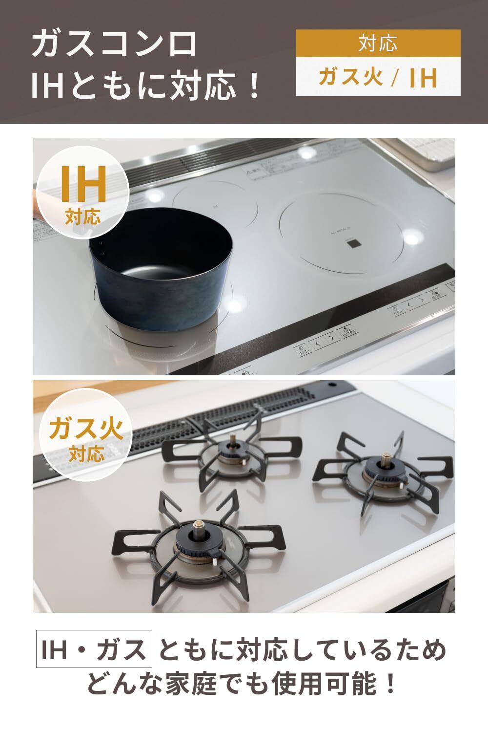 対応熱源:ガス火・IH100V・IH200V・ハロゲンヒーター・シーズーヒーター