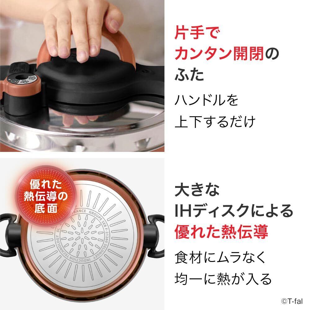 ティファール 圧力鍋 5.2L 3~5人用 IH ガス火対応 圧力鍋モードと鍋モードの2つの調理方法 簡単開閉のフタ 角煮 肉じゃが レシピブック付き P4705138