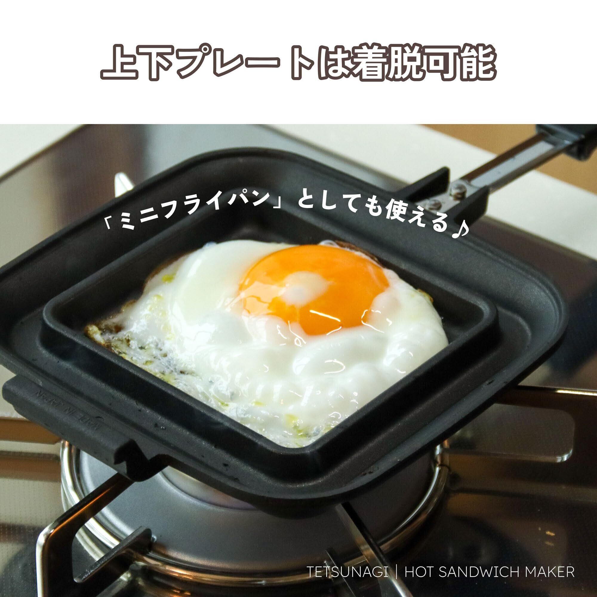 TETSUNAGI(テツナギ)ホットサンドメーカー IH・ガス直火対応 日本製 パン耳圧着 両面フラット 着脱式プレート フッ素樹脂加工 PFOSフリー PFOAフリー|熱を均一に伝えやすい設計で、毎日の朝食づくりに使いやすい調理器具 |T100900