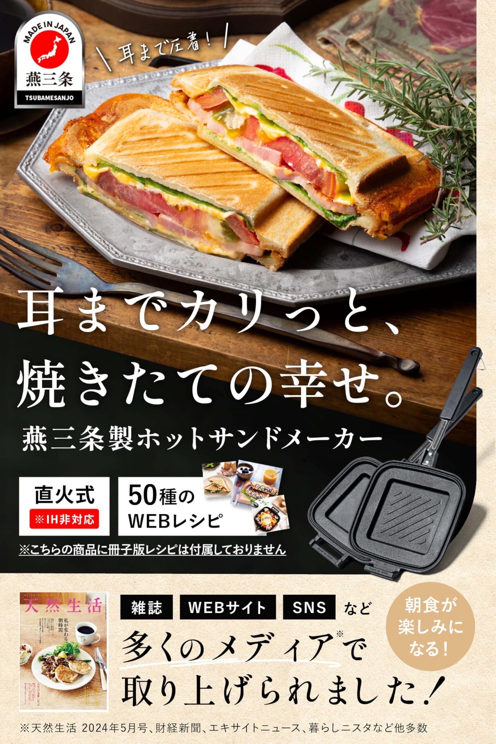 日本製 ホットサンドメーカー 直火 耳圧着 50種の電子レシピ付 耳まで焼ける 上下分離型 片面フラット フッ素加工