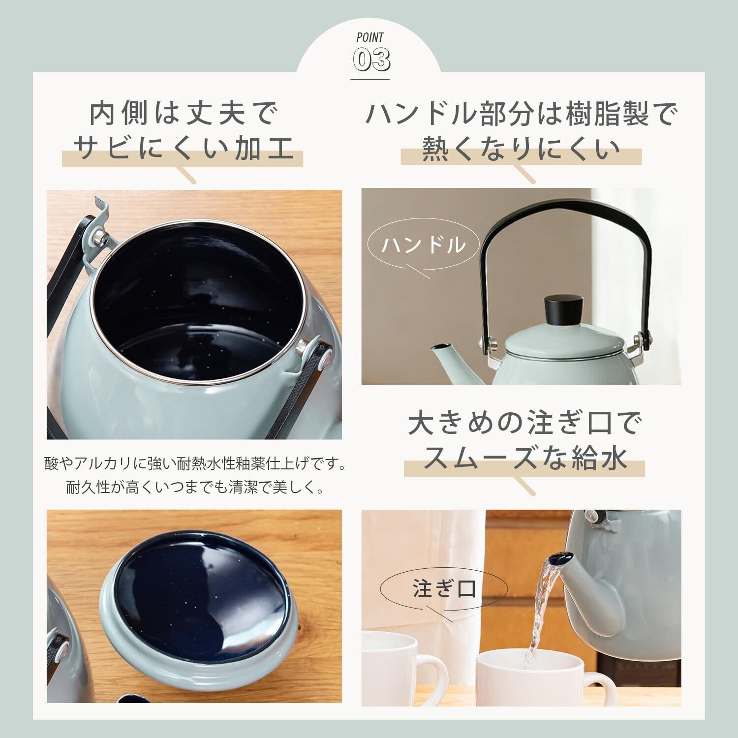 やかん ホーロー ブルーグレー IH ガス火 対応 2.5L 大容量 ストーブに乗せる 琺瑯製 ケトル おしゃれ 広口設計 サビにくい 湯沸かし 熱伝導性 麦茶