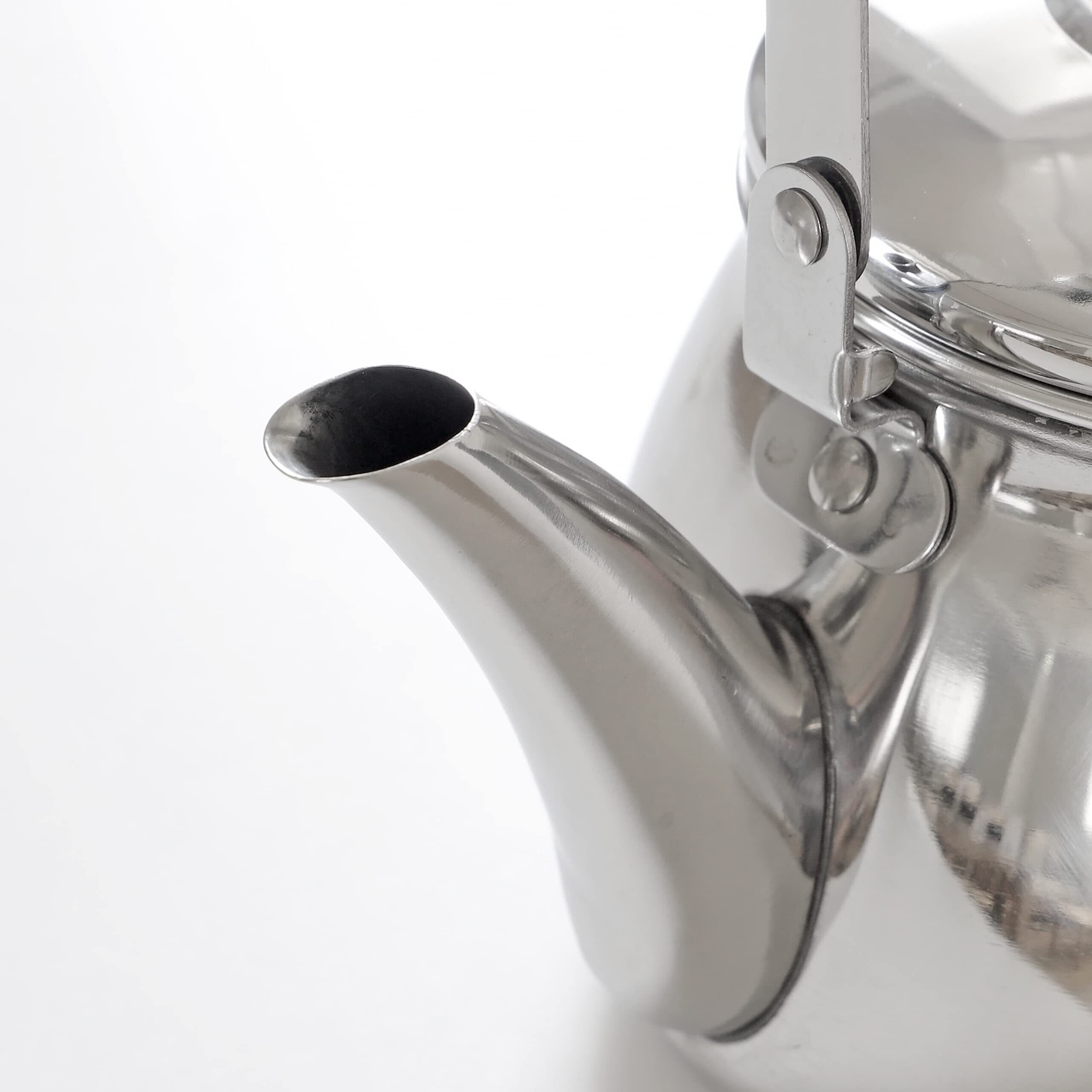 ○お茶の煮出しに便利な、深型の茶こしアミが付いたステンレス製ケトル(やかん)です。 ○広口なので中まで洗えて衛生的です。2Lの冷水筒、パーソナルジャグ2本分を1度に沸かせる、大容量モデルのケトルです。 ○ガス火はもちろん、200VのIHクッキングヒーターやハロゲンヒーターなどオール熱源に対応しています。
