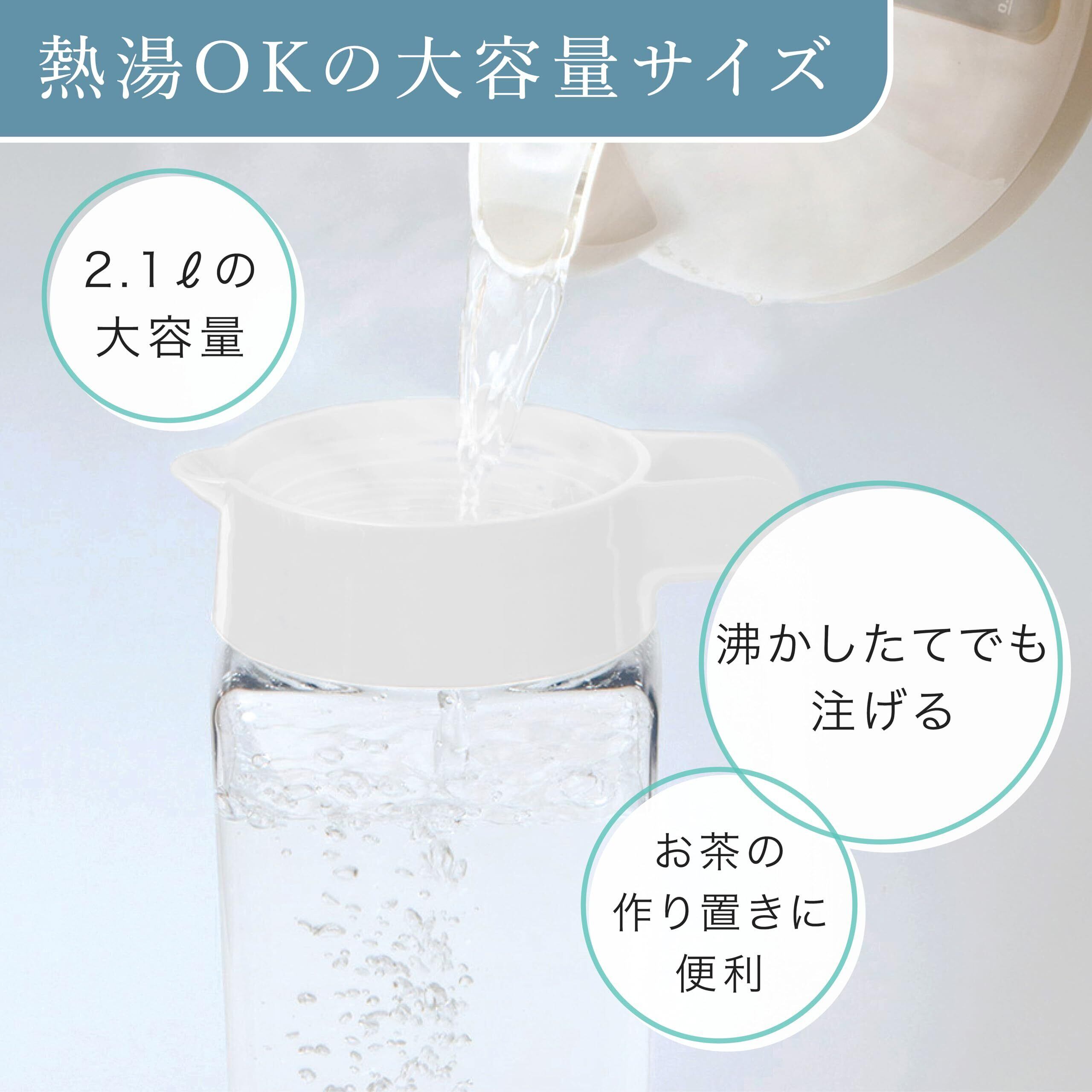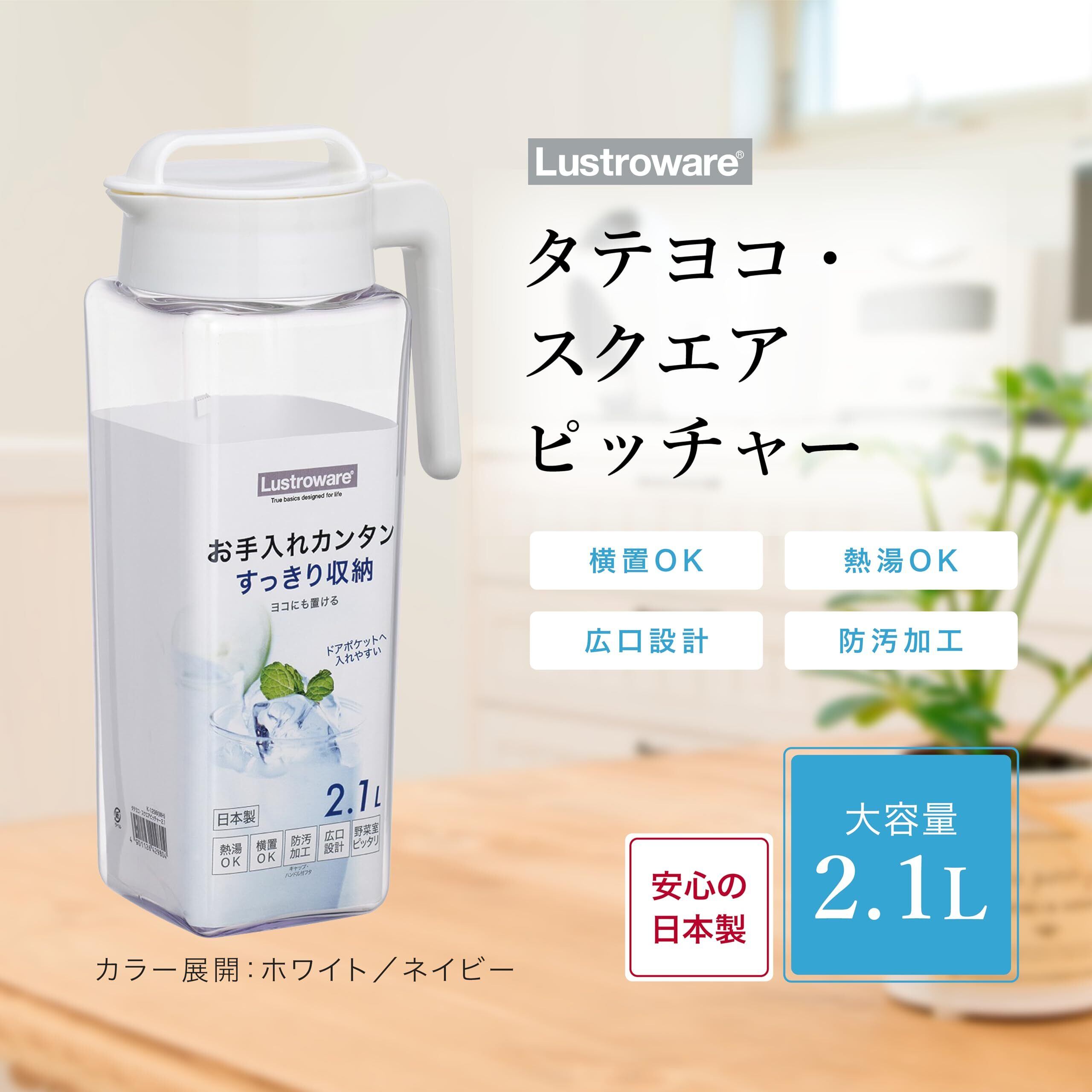 岩崎工業 ラストロウェア スクエア ピッチャー 冷水筒 耐熱 縦横置き 2.1L 日本製 麦茶ポット 冷茶 ボトル 冷水ポット お茶ポット 水出し 水出しコーヒー ウォーター ジャグ 横置き 広口 ホワイト K-1298 WH | 毎日発送✿はなまる