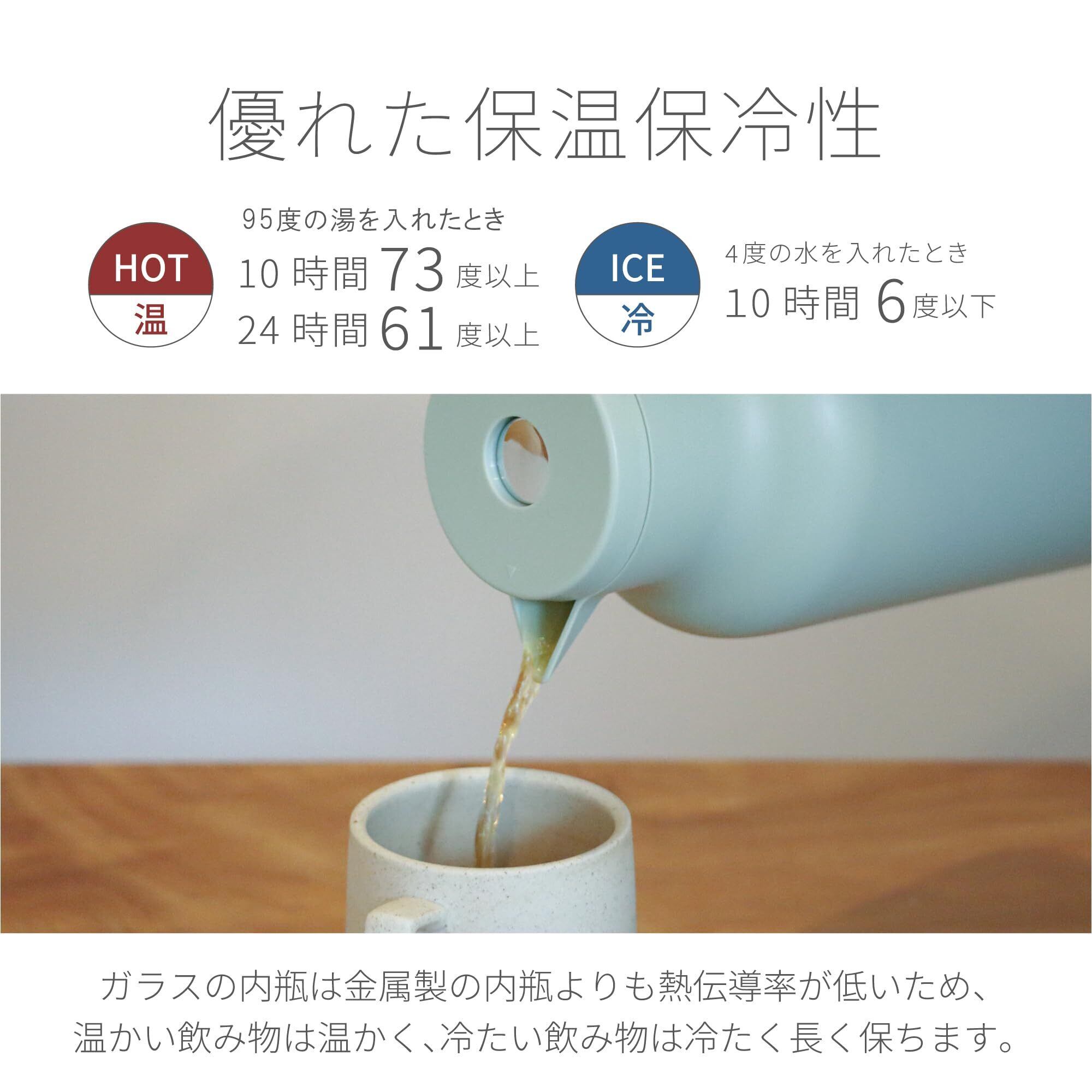 POKETLE ポケトル 卓上ポット 保温保冷 ガラス魔法瓶 1L 保温ポット 1リットル ウォーターサーバー 真空断熱 保温 保冷 1L ポット 保温74℃以下 保冷10℃以下 グリーン | 毎日発送✿はなまる