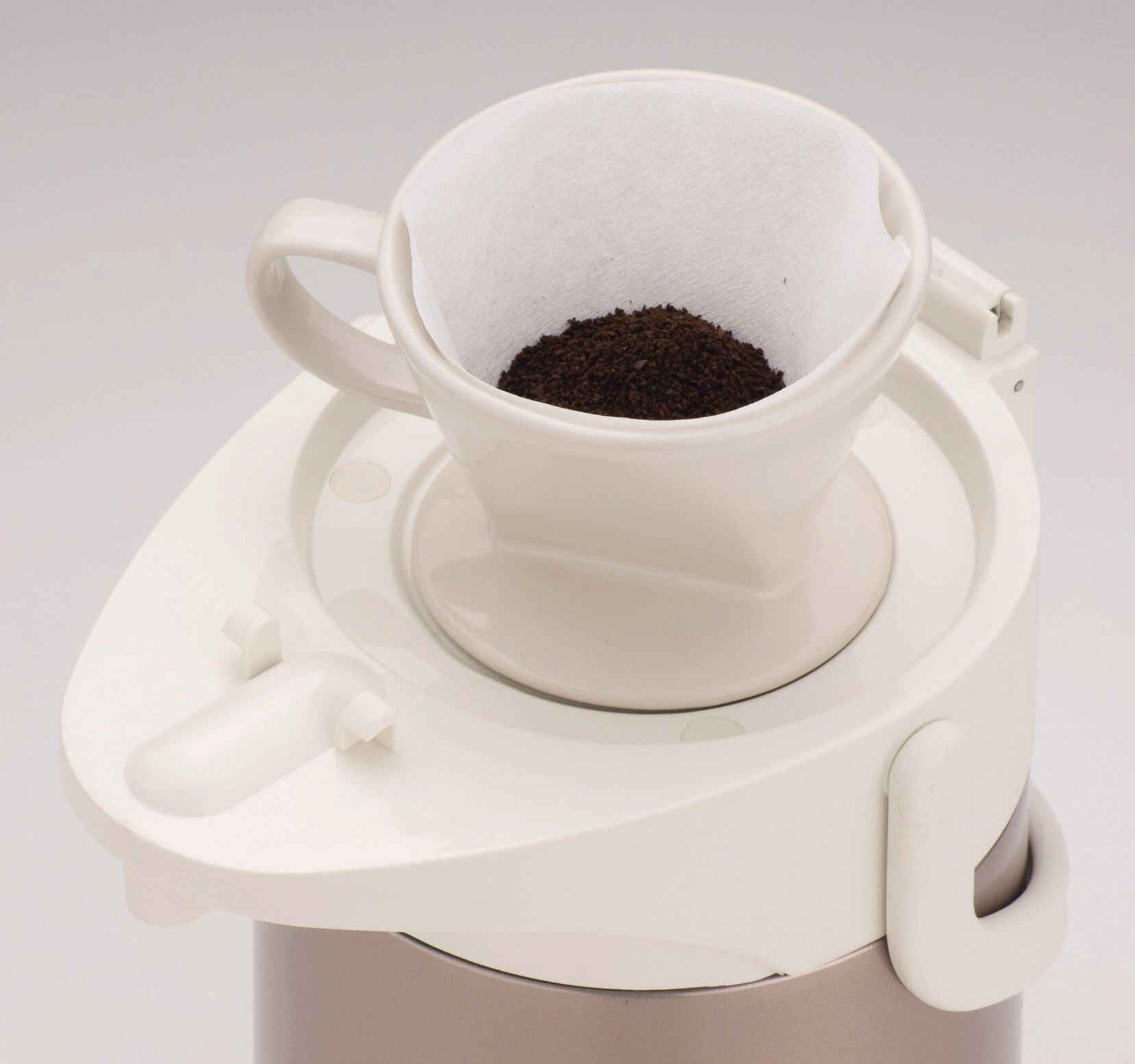 電気ポットを使わずにダブルステンレスまほうびんで節電! シンプルでコンパクトなボディなので、持ち運びもラクラクです。 ●熱いお茶から冷たい麦茶まで・・・保温・保冷どちらもOK ●お手入れしやすい着脱式のふた ●お手入れしやすく、注ぎやすい直径6cmの口径 ●コーヒードリッパーをセットして使えます。