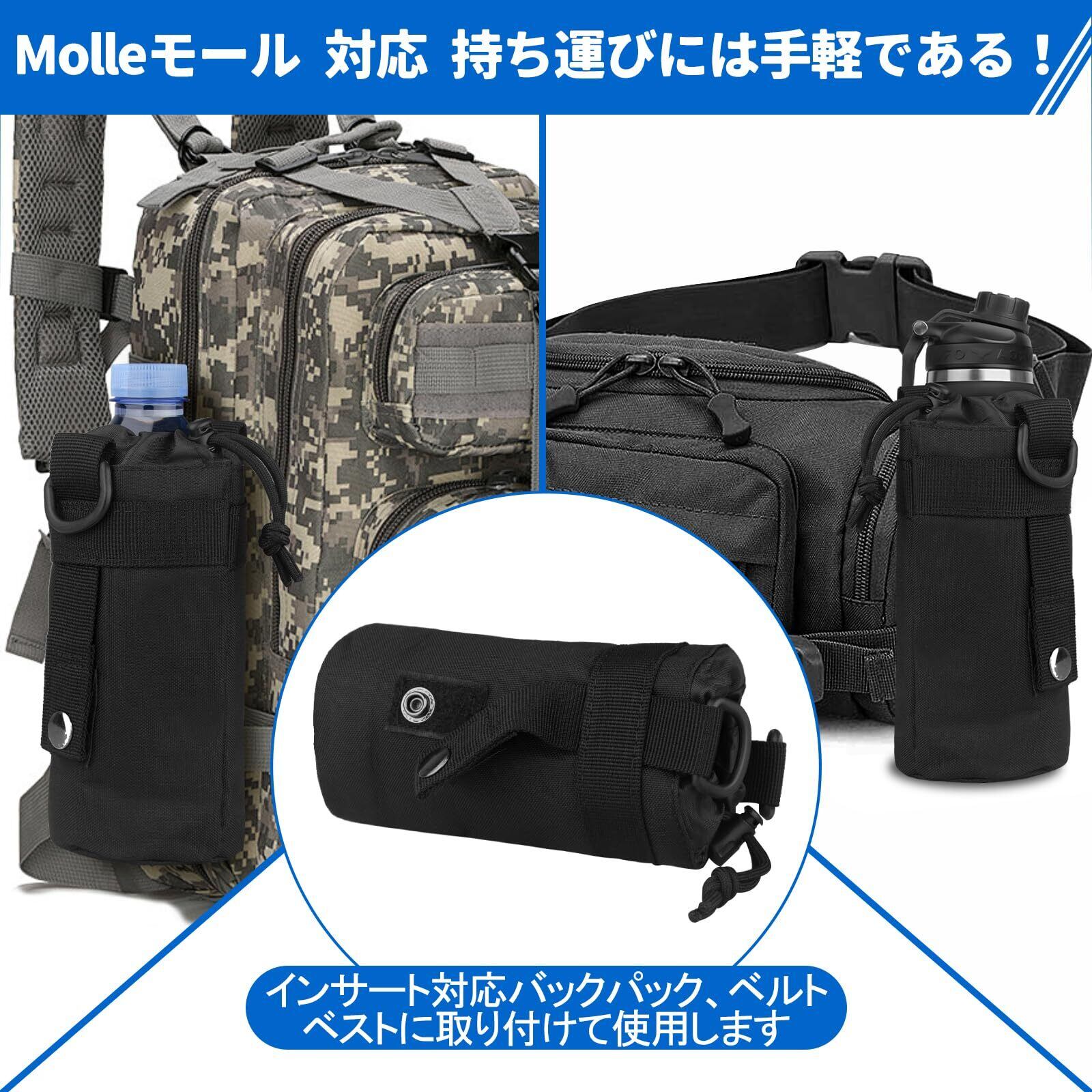 水筒ポーチ ペットボトル550ml ペットボトルホルダー Molleモール対応 ドリンクホルダー ペットボトルケース ウォーターボトルバッグ アウトドア/キャンプ/フィットネス/通勤/旅行/サイクリング 水筒 収納 (ブラック)
